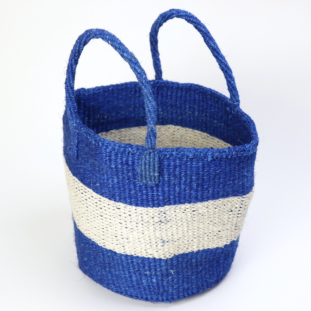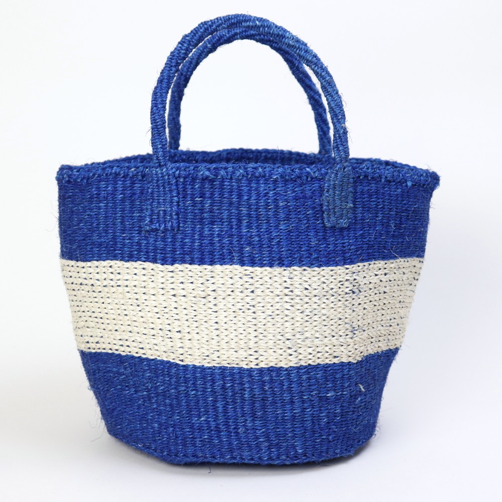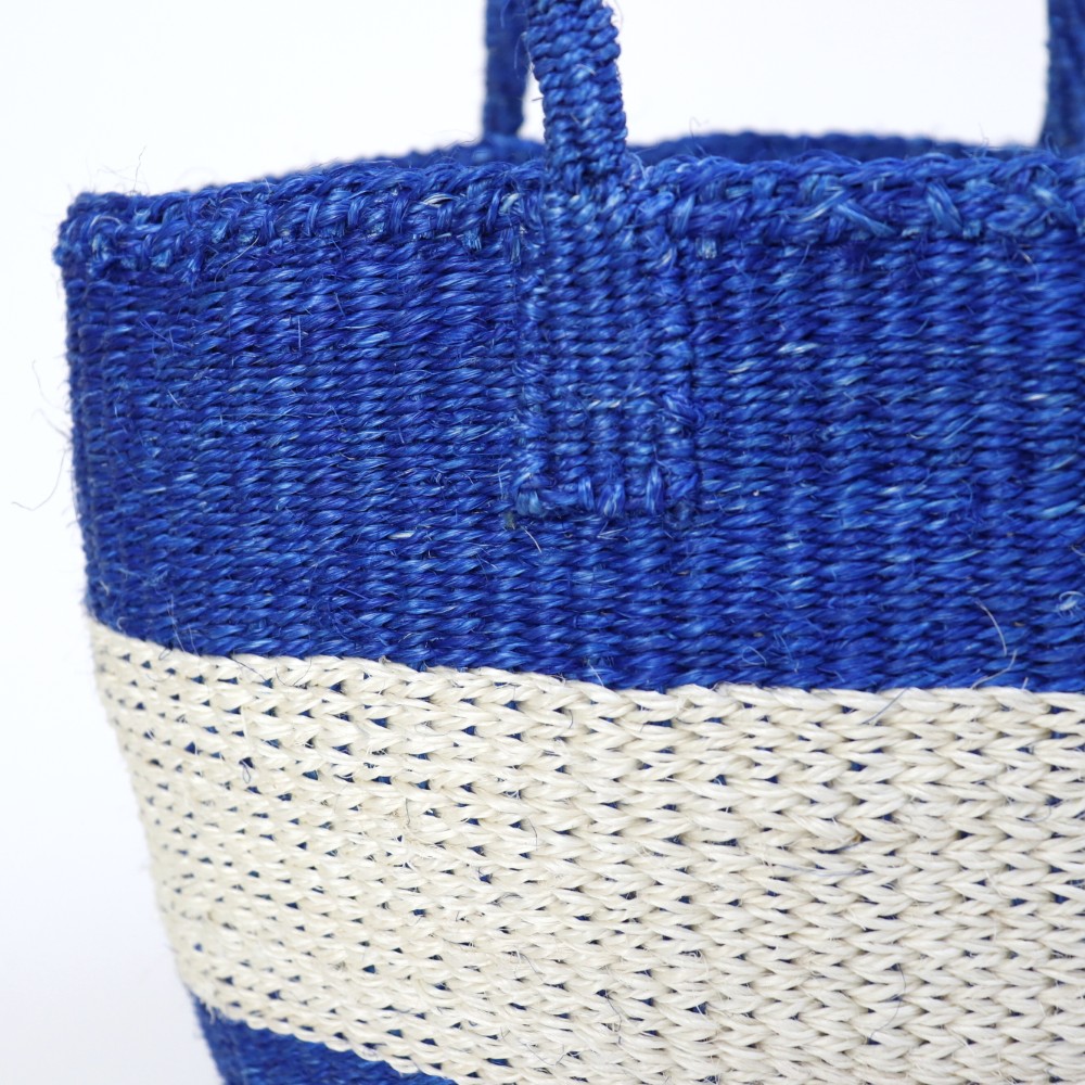 【受注商品】サイザルバッグ9インチ ヘリンボーン編みセンター 青x生成