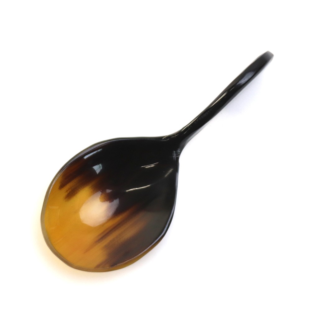 牛角製品は、熱に弱い性質がございますので、熱湯などのご使用はご遠慮ください。変形ひび割れが生じる場合がございますのでご注意下さい。手作り品のため、柄・形も画像と多少異なる場合がございます。予めご了承ください。