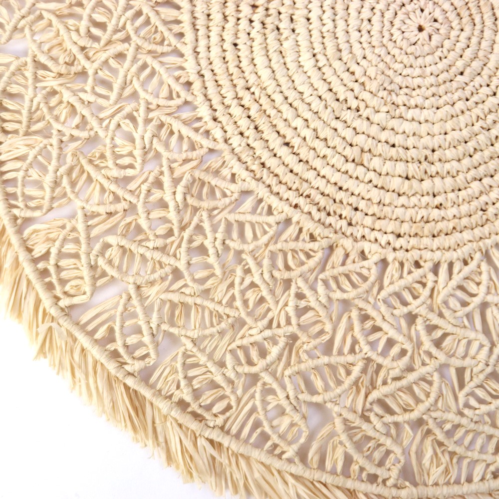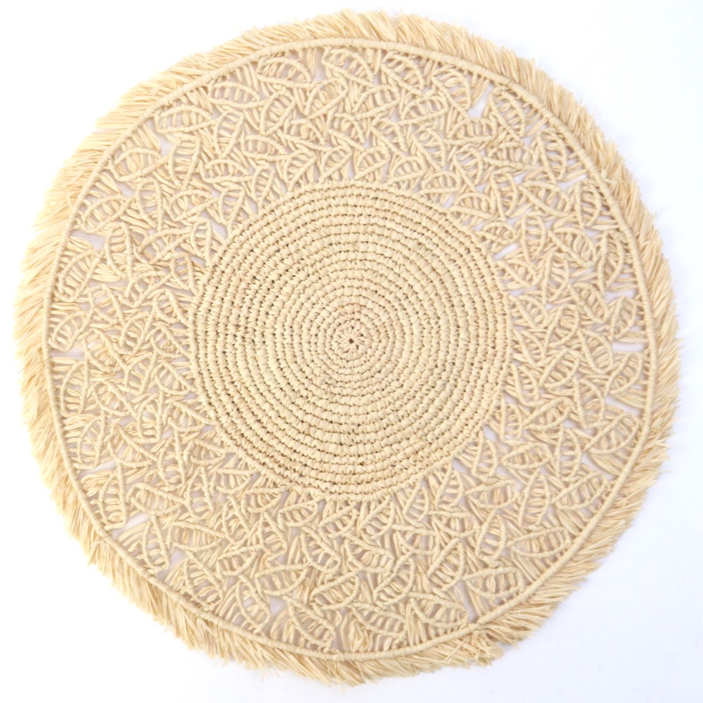 透かし模様と縁のフリンジがが涼しげなラフィアのプレイスマットです。美しい艶と優しい肌触りが特徴の上質なマダガスカル産ラフィアを使用。ナチュラルテイストのコーディネイトしやすいデザインです。