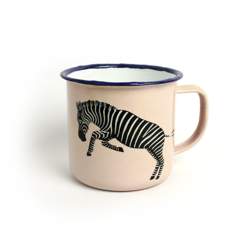 ハンドペイント動物ホーローマグカップ シマウマ ペールピンク