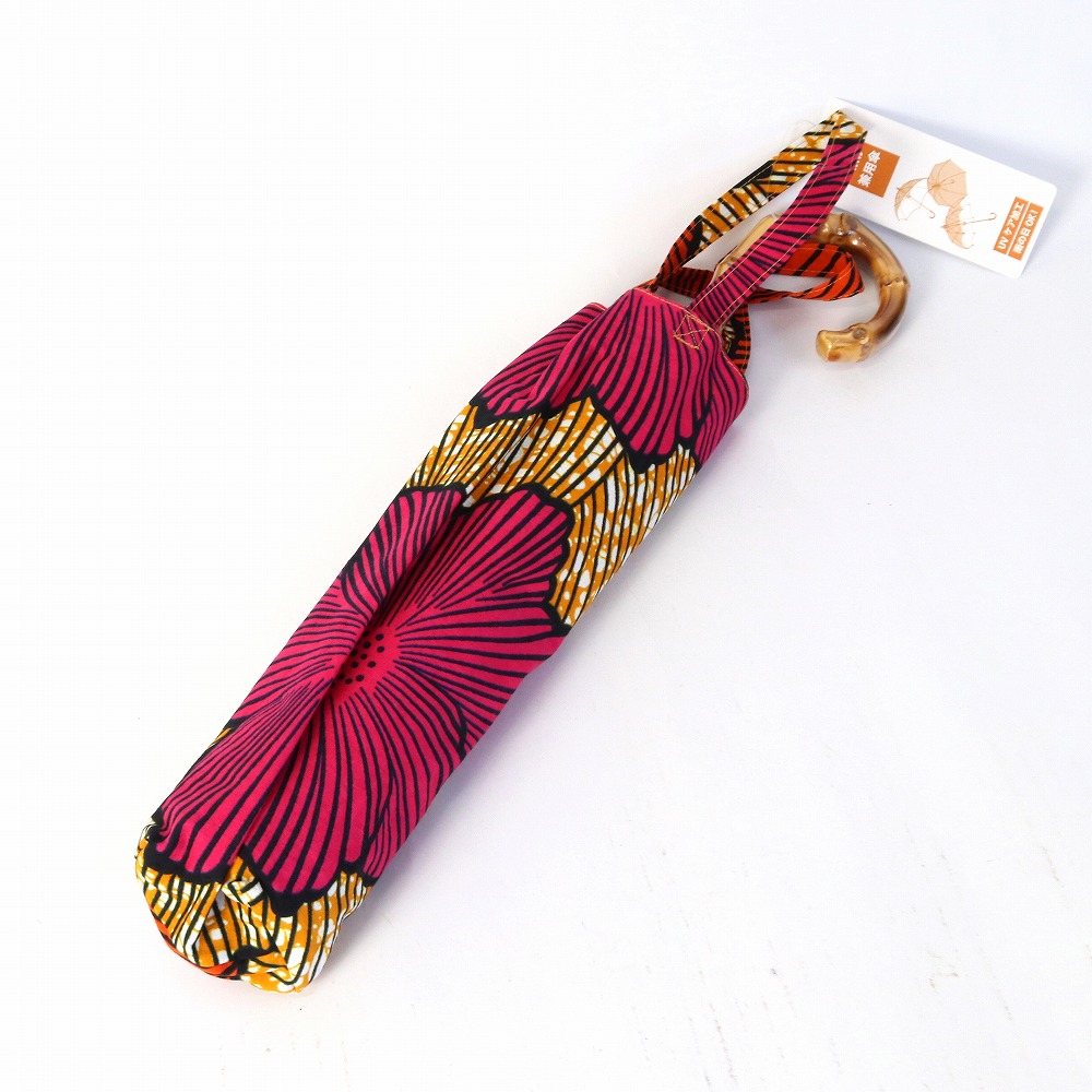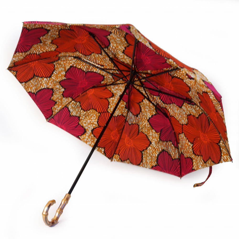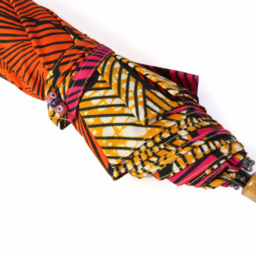 ●1枚布を使用している為、柄は写真と多少異なる場合がございます。●生地の特性上、多少のプリントのずれやくすみ等がございます。●止め具部分のビーズの柄はアソートとなります。●布部分は、Uカット加工、撥水加工ずみです。●アフリカンプリント生地は摩擦や水濡れにより色落ちや水漏れする可能性がござます。傘に加工するにあたり必要最低限の撥水加工を施しておりますが、主に日傘としての使用を推奨しております。●ご使用時は市販の防水スプレーの併用をおすすめしております。●万一、雨などで濡れた場合はそまま放置せず、開いて乾かしてください。