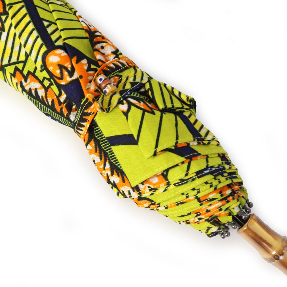 ●1枚布を使用している為、柄は写真と多少異なる場合がございます。●生地の特性上、多少のプリントのずれやくすみ等がございます。●止め具部分のビーズの柄はアソートとなります。●布部分は、Uカット加工、撥水加工ずみです。●アフリカンプリント生地は摩擦や水濡れにより色落ちや水漏れする可能性がござます。傘に加工するにあたり必要最低限の撥水加工を施しておりますが、主に日傘としての使用を推奨しております。●ご使用時は市販の防水スプレーの併用をおすすめしております。●万一、雨などで濡れた場合はそまま放置せず、開いて乾かしてください。
