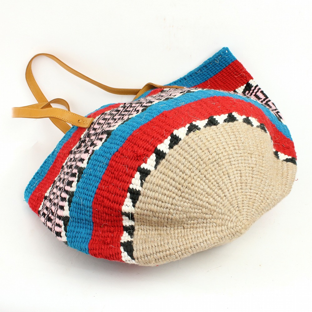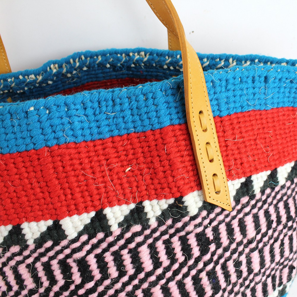 オールアクリルサイザルバッグ0x19 伝統柄 平革ハンドル茶 カラフル 02 一点物