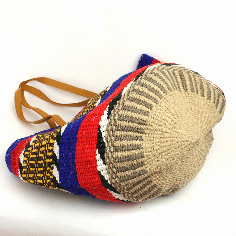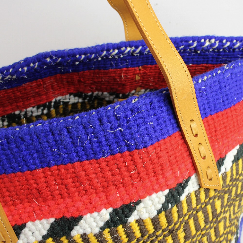 オールアクリルサイザルバッグ0x19 伝統柄 平革ハンドル茶 カラフル 04 一点物