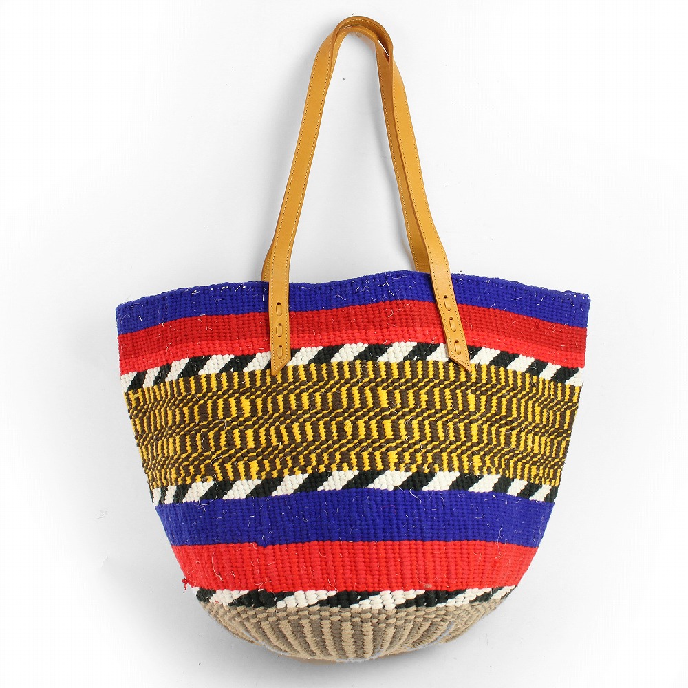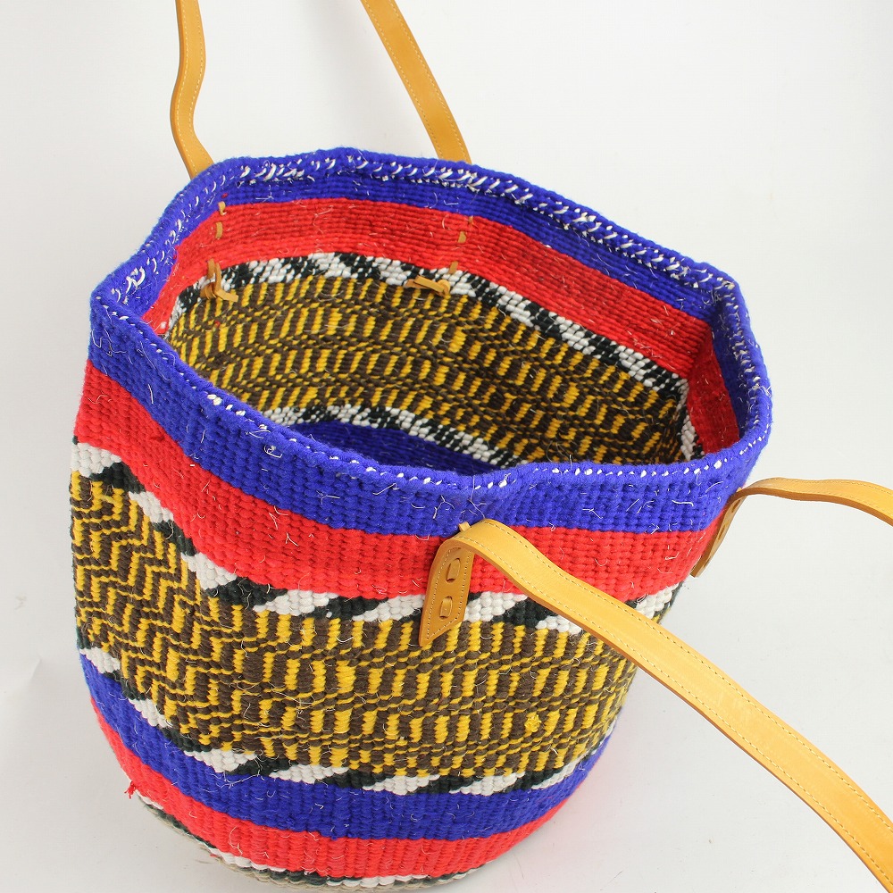 オールシーズン使えるショルダータイプのアクリルサイザルバッグです。平革ハンドルがポイント。サイザルとアクリルを合わせることでふんわりした質感が楽しめます。カラフルな色遣いと柄で3シーズン使える人気のカゴバッグです。丸底大きめなので、物もたくさん入ります。お出かけに通勤通学に、使わない時はインテリアバスケットとしても使える便利なカゴバッグです。こちらの商品は一点ものです。