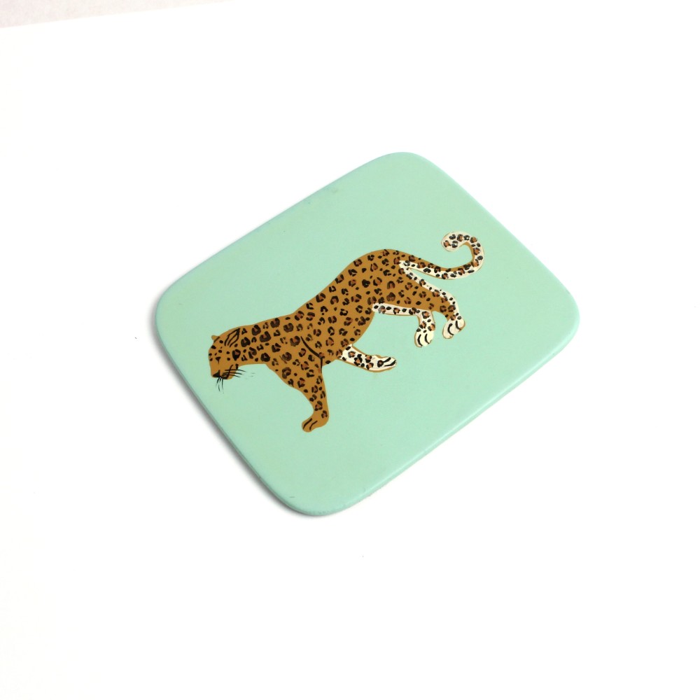 ハンドペイント動物コースター 四角 ヒョウ ミント