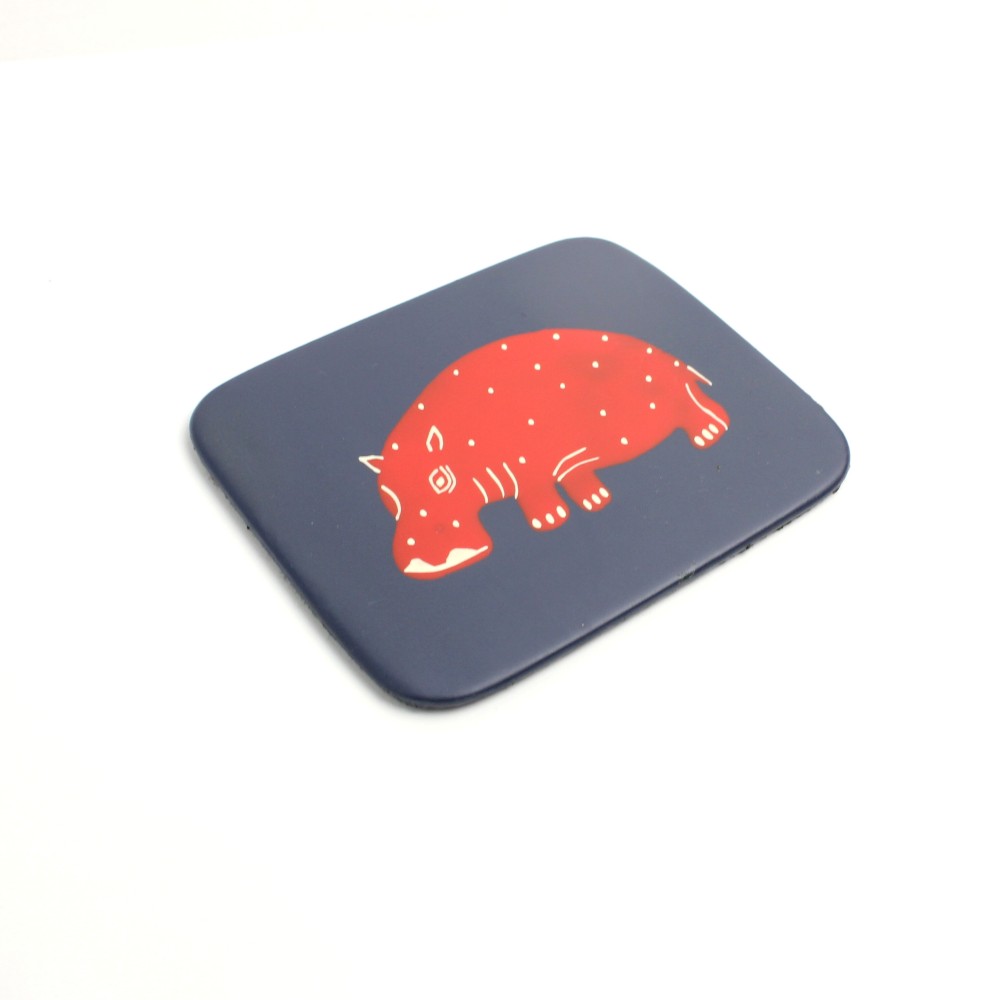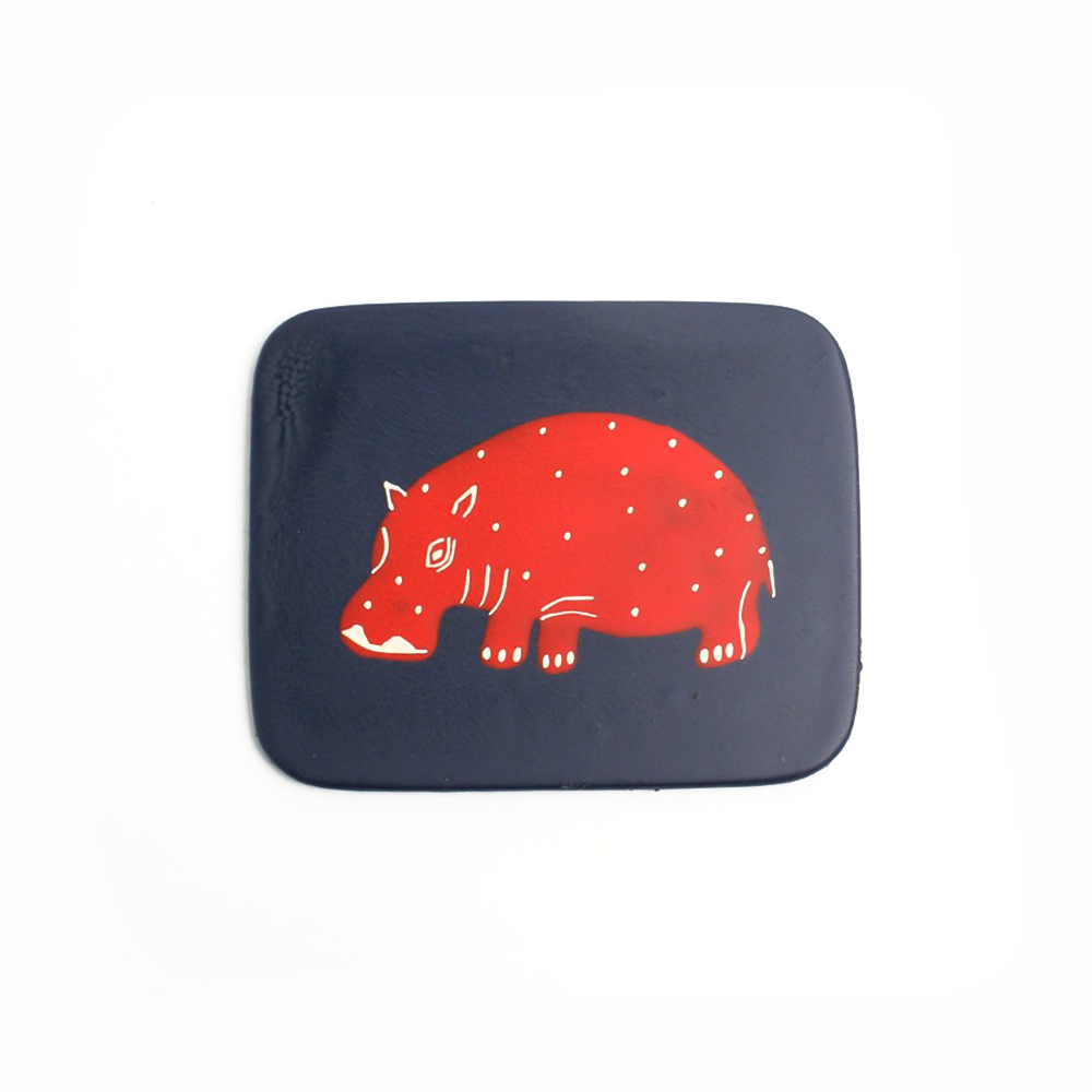 ハンドペイント動物コースター 四角 カバ ネイビー