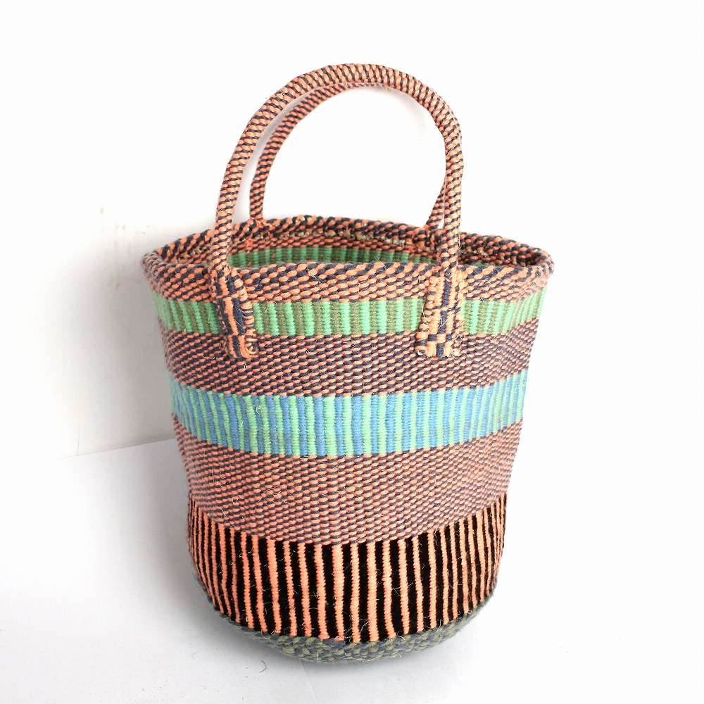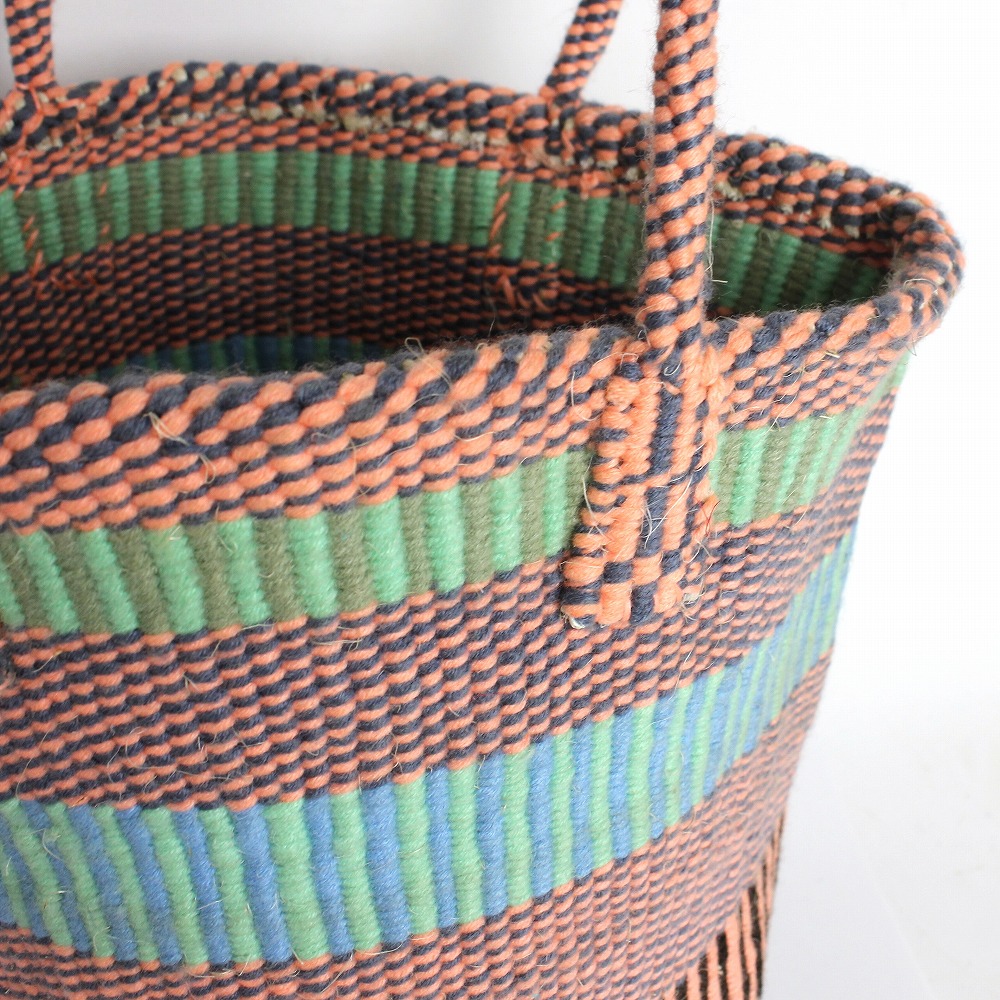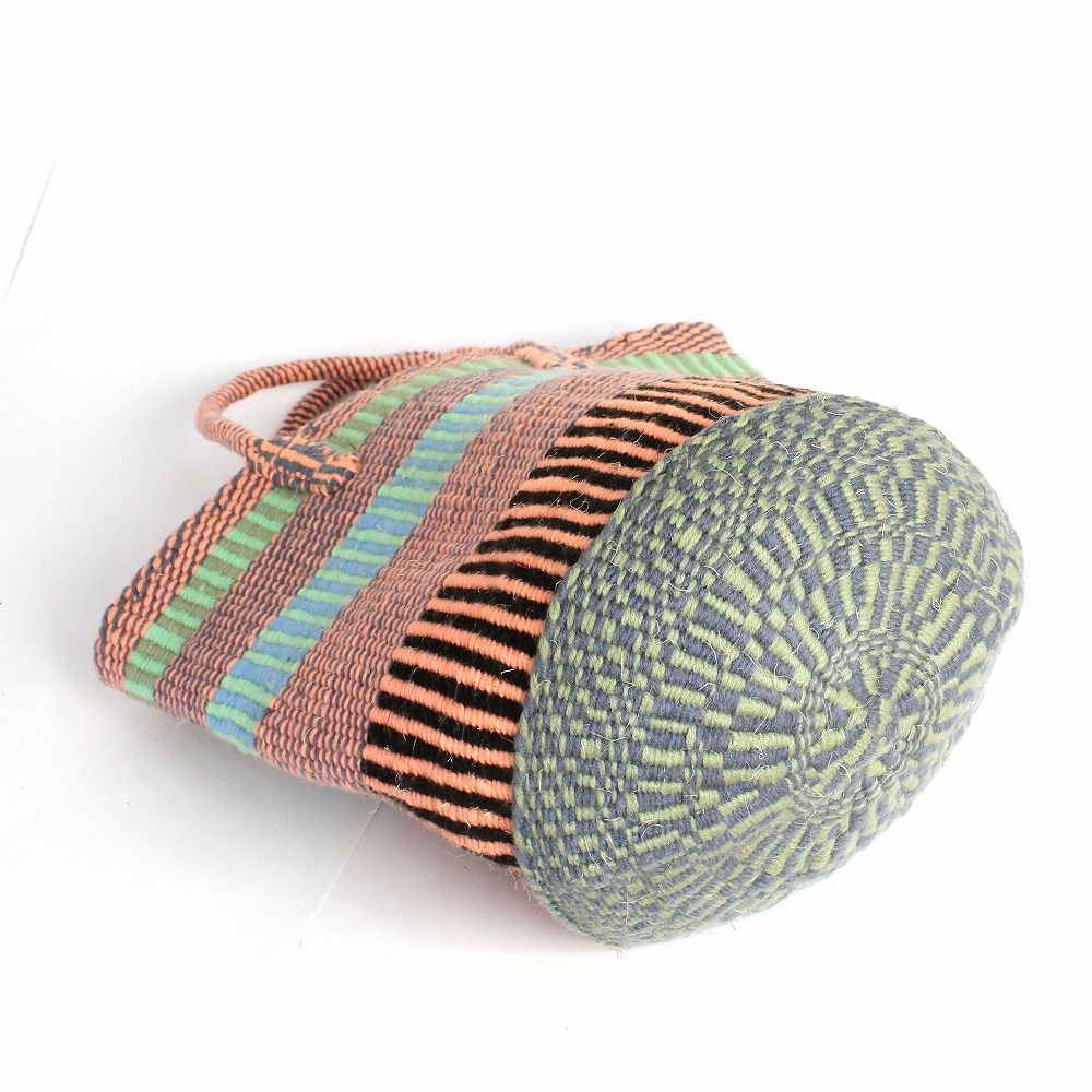 通常のかごを編んだときに少し余ってしまうアクリル糸とカラフルなサイザルで編み上げた、デザイン性の高いアップサイクルアクリルバッグ9インチです。アクリルサイザルとは、サイザル麻を芯にしてカラフルなアクリル毛糸を編み込んだカゴバッグです。持ち手部分も毛糸を編み込んでいるので、ふんわり持ちやすく、オールシーズン活躍するカゴバッグです。アイディアを加えることで付加価値の高いモノに生まれ変わらせるサスティナブルな試みです。世界に一つしかない価値ある「アップサイクルサイザルバッグ」いかがでしょうか?