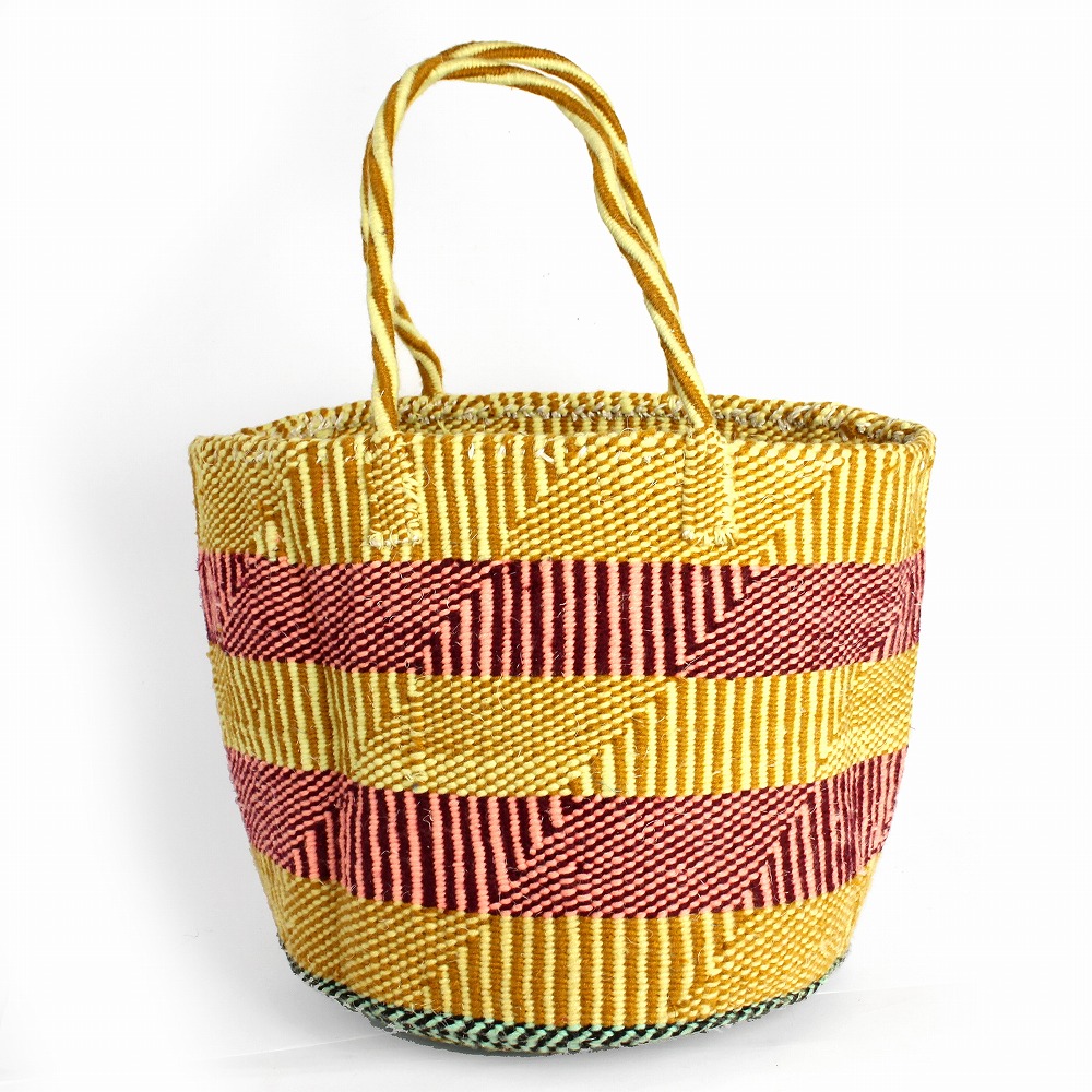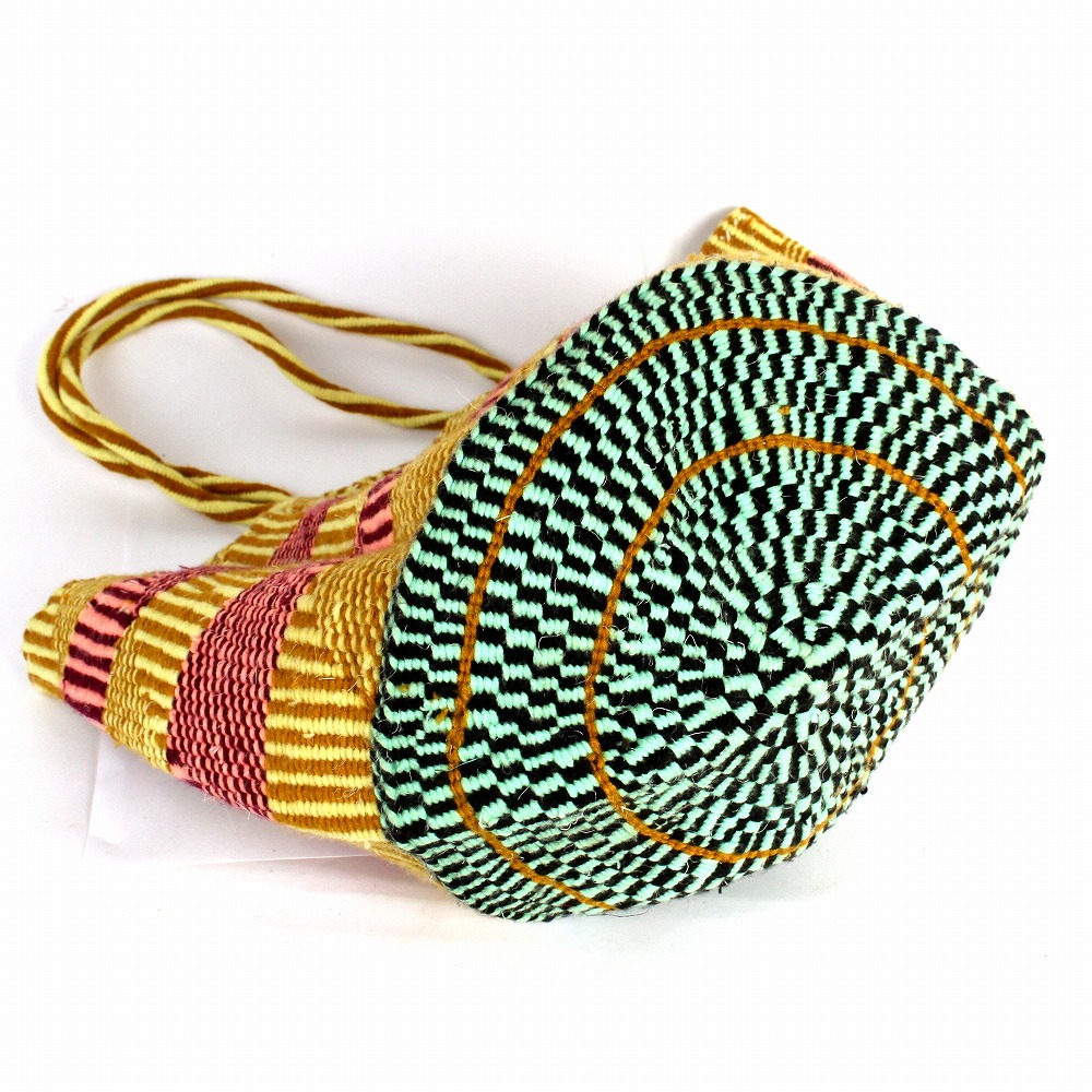 通常のかごを編んだときに少し余ってしまうアクリル糸とカラフルなサイザルで編み上げた、デザイン性の高いアップサイクルアクリルバッグ12x11インチです。アクリルサイザルとは、サイザル麻を芯にしてカラフルなアクリル毛糸を編み込んだカゴバッグです。大き目サイズ、持ち手部分も毛糸を編み込んでいるので、ふんわり持ちやすく、オールシーズン活躍するカゴバッグです。アイディアを加えることで付加価値の高いモノに生まれ変わらせるサスティナブルな試みです。世界に一つしかない価値ある「アップサイクルサイザルバッグ」いかがでしょうか?