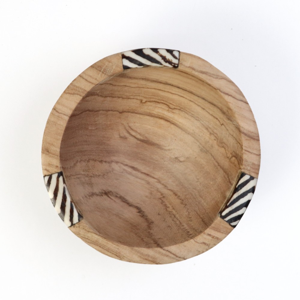 自然なテイストが人気のオリーブの木と牛骨で作られたおしゃれなミニボウルです。手作り品のため、木目、サイズはひとつひとつ微妙に異なります。コチラは雑貨としての販売です。