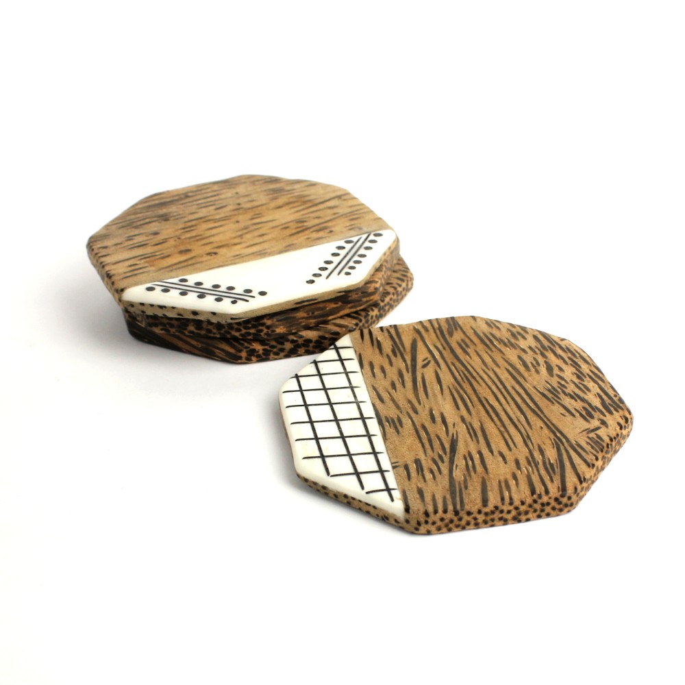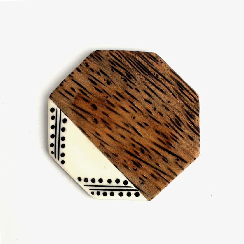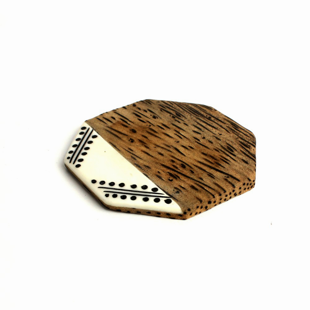ココナッツウッド オクタゴンコースター 牛骨装飾エッジ ストレイトリーフ