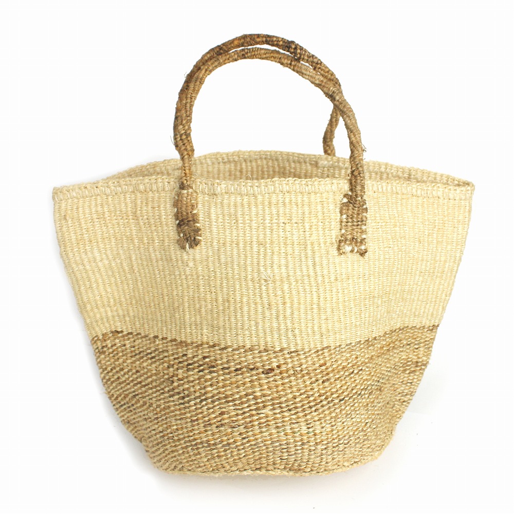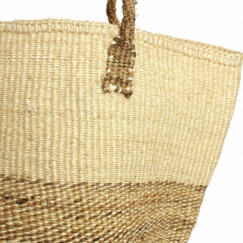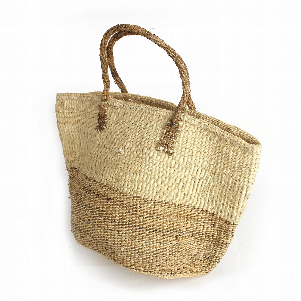 バナナ素材とサイザル麻をコラボした、使いやすい9インのカゴバッグ。ナチュラル色合いの共手ハンドルと2トーンデザインがポイント。ケニアのバナナかごバッグとは、バナナの樹皮を編み上げたカゴバッグです。ナチュラルな質感をお楽しみください。
