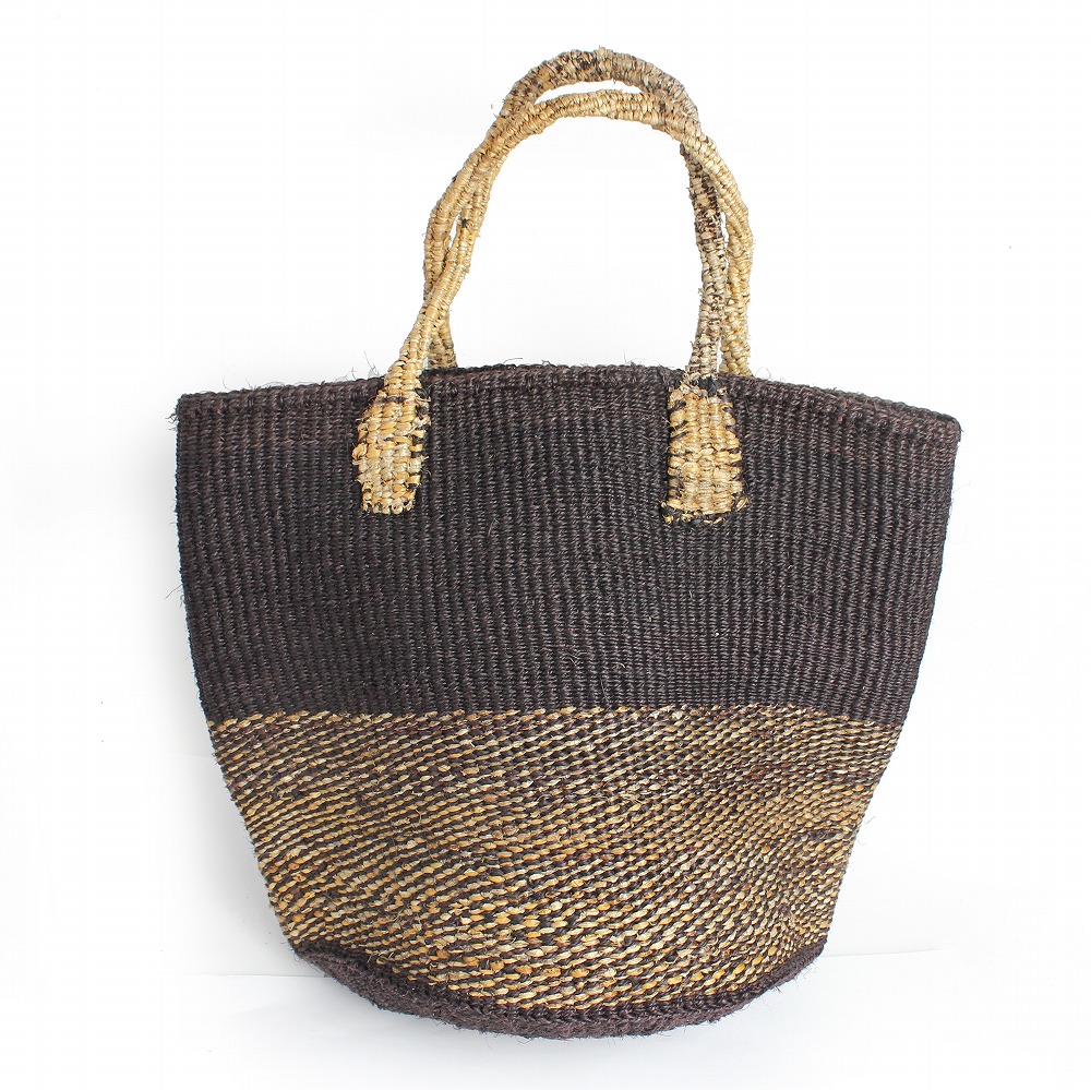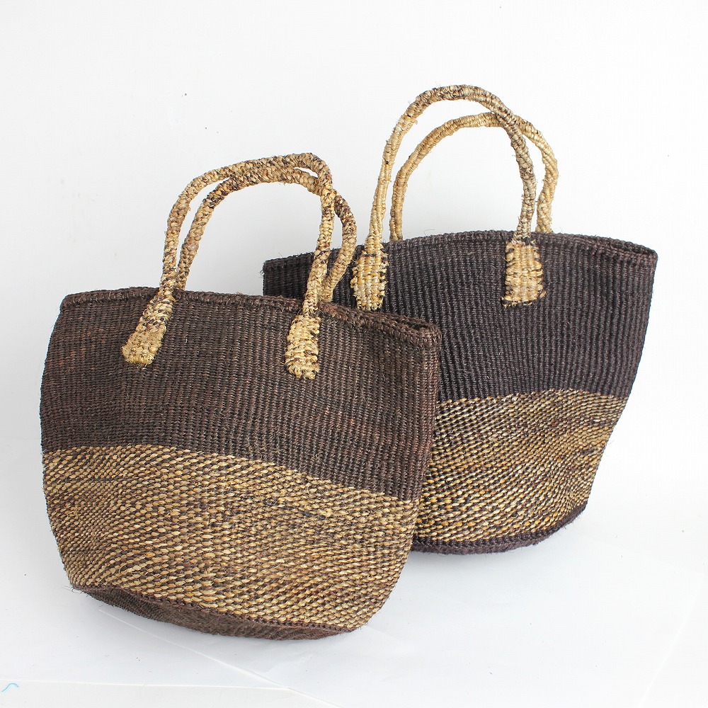 バナナ素材とサイザル麻をコラボした、使いやすい9インのカゴバッグ。落ち着いた色合いの共手ハンドルと2トーンデザインがポイント。ケニアのバナナかごバッグとは、バナナの樹皮を編み上げたカゴバッグです。ナチュラルな質感をお楽しみください。