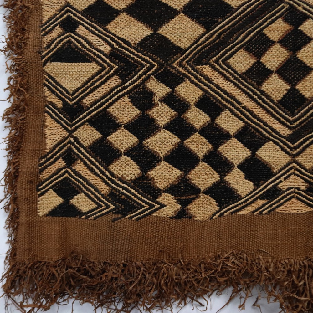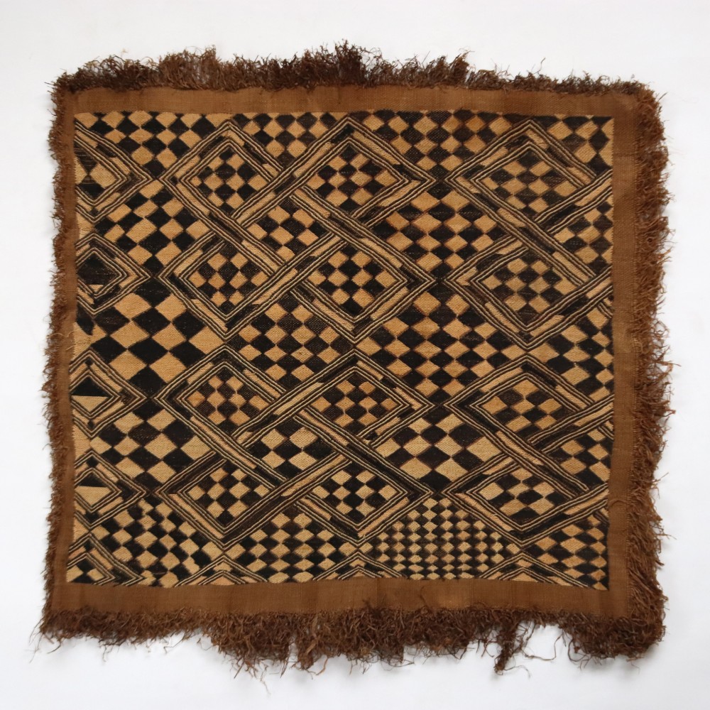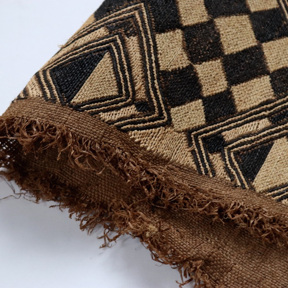 アフリカ中央部に位置するコンゴ民主共和国にかつて栄えたクバ王国に伝わる伝統的な布です。ショワやブショングの人々が作る「クバ布」は、独特で芸術性が高く、額に装丁して格調高い美術品として、また高級感あふれるインテリアクロスやタペストリー、敷物としてたいへん人気の工芸品です。
