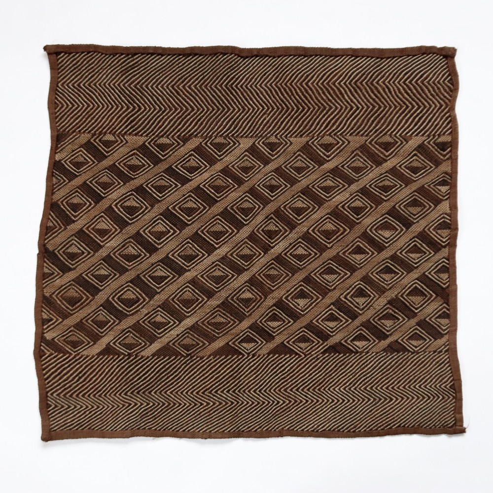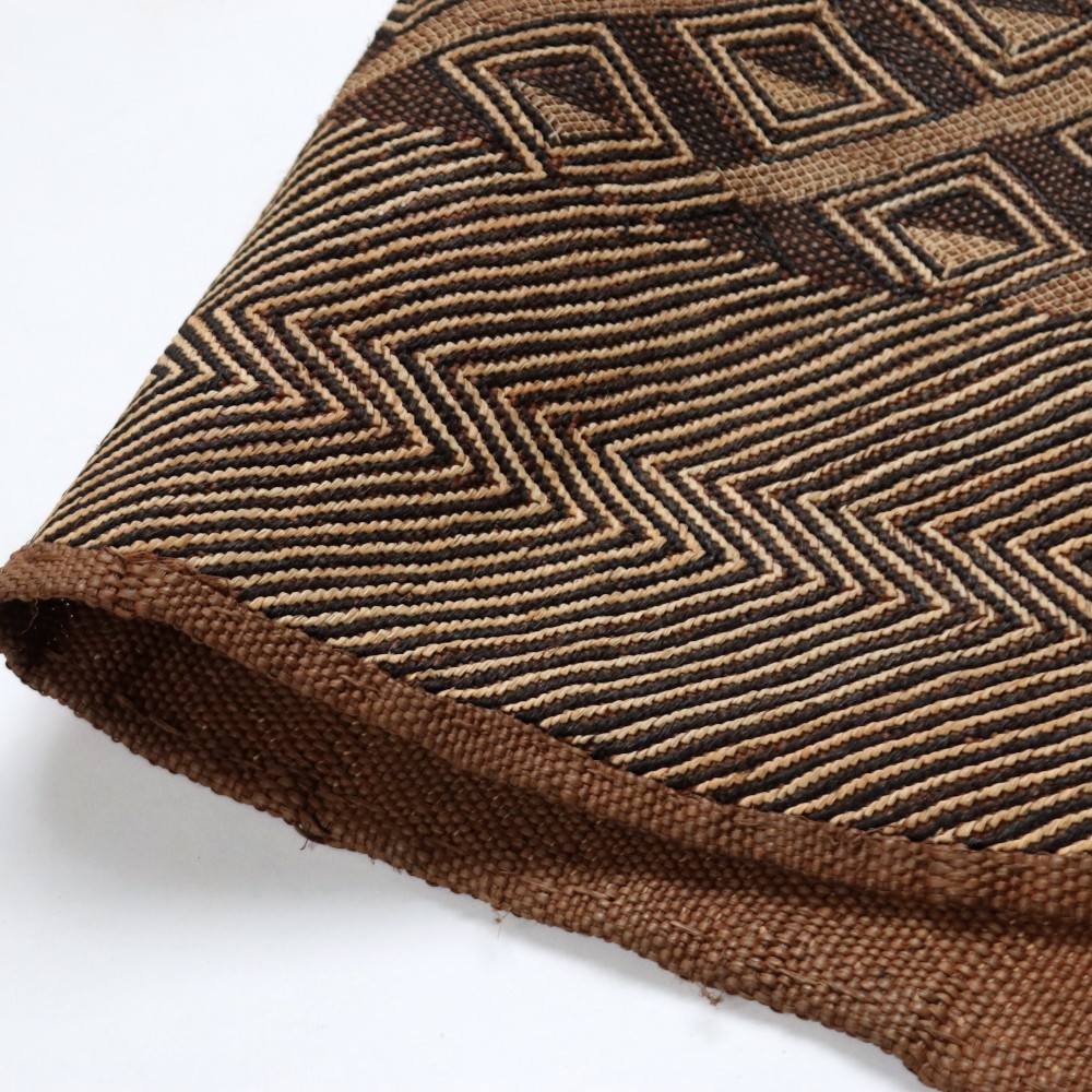 アフリカ中央部に位置するコンゴ民主共和国にかつて栄えたクバ王国に伝わる伝統的な布です。ショワやブショングの人々が作る「クバ布」は、独特で芸術性が高く、額に装丁して格調高い美術品として、また高級感あふれるインテリアクロスやタペストリー、敷物としてたいへん人気の工芸品です。