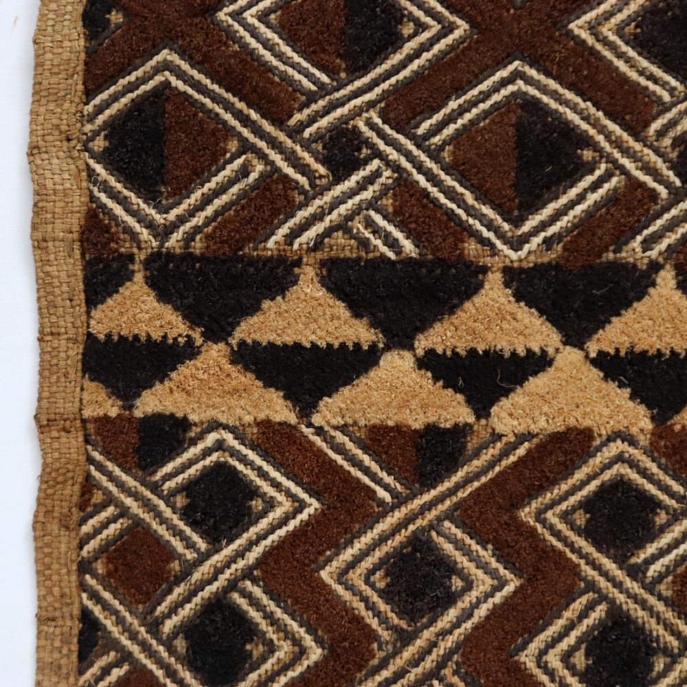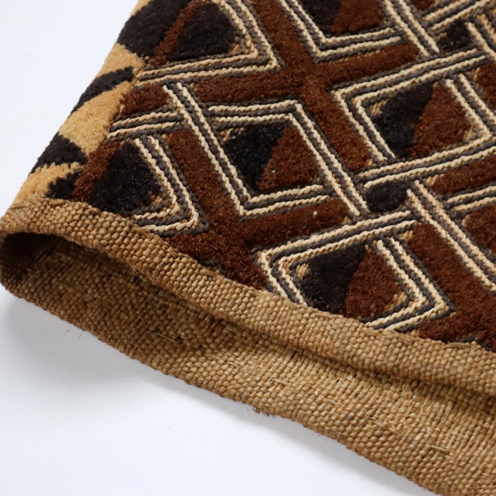 アフリカ中央部に位置するコンゴ民主共和国にかつて栄えたクバ王国に伝わる伝統的な布です。ショワやブショングの人々が作る「クバ布」は、独特で芸術性が高く、額に装丁して格調高い美術品として、また高級感あふれるインテリアクロスやタペストリー、敷物としてたいへん人気の工芸品です。