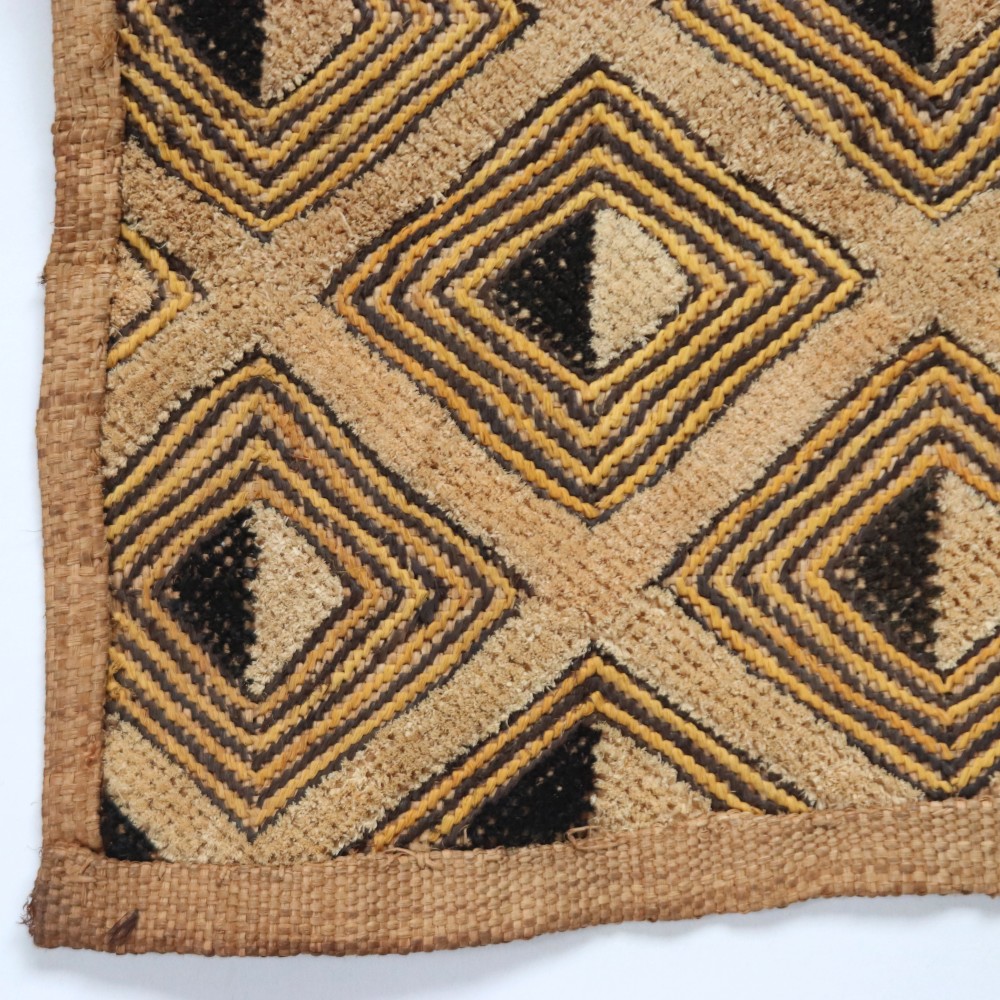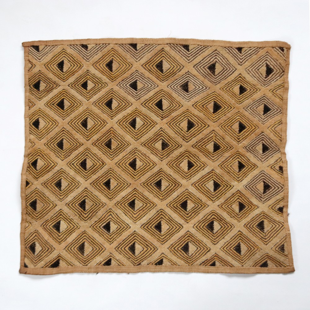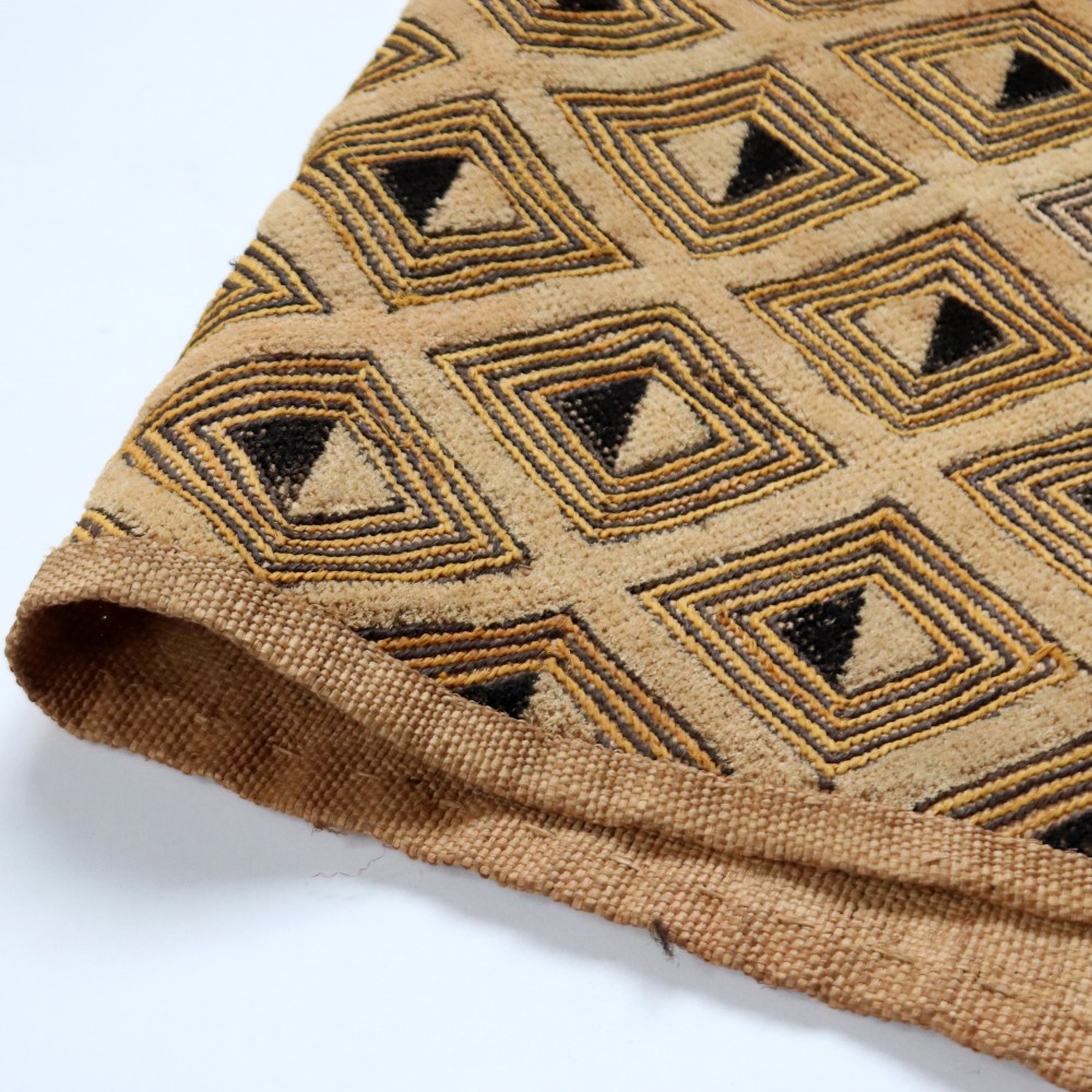 アフリカ中央部に位置するコンゴ民主共和国にかつて栄えたクバ王国に伝わる伝統的な布です。ショワやブショングの人々が作る「クバ布」は、独特で芸術性が高く、額に装丁して格調高い美術品として、また高級感あふれるインテリアクロスやタペストリー、敷物としてたいへん人気の工芸品です。
