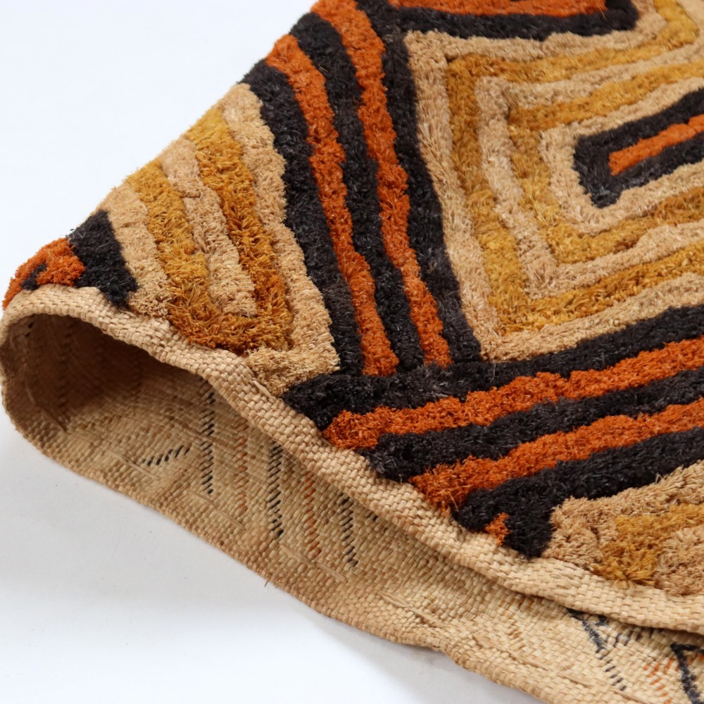 アフリカ中央部に位置するコンゴ民主共和国にかつて栄えたクバ王国に伝わる伝統的な布です。ショワやブショングの人々が作る「クバ布」は、独特で芸術性が高く、額に装丁して格調高い美術品として、また高級感あふれるインテリアクロスやタペストリー、敷物としてたいへん人気の工芸品です。