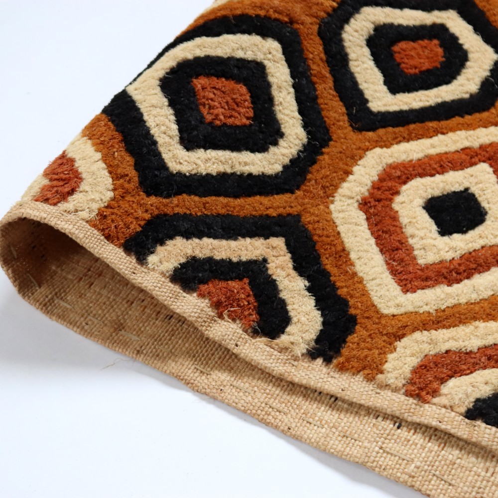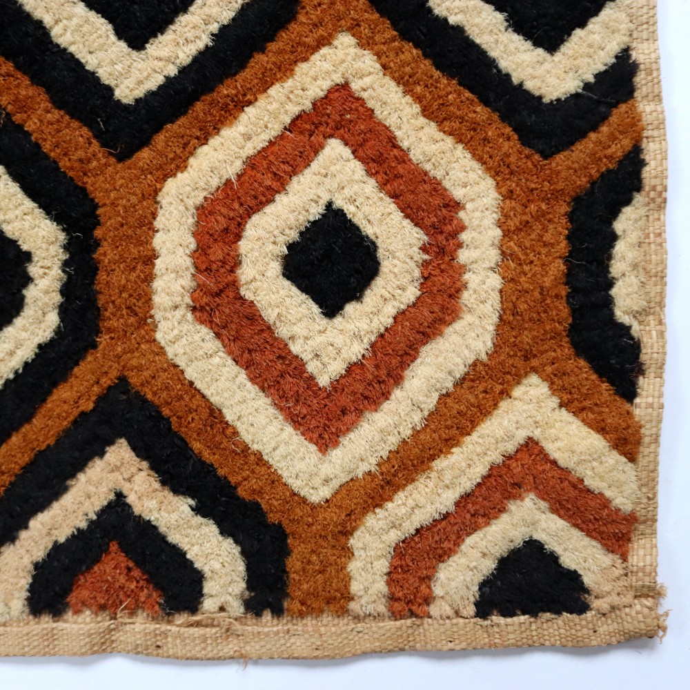 アフリカ中央部に位置するコンゴ民主共和国にかつて栄えたクバ王国に伝わる伝統的な布です。ショワやブショングの人々が作る「クバ布」は、独特で芸術性が高く、額に装丁して格調高い美術品として、また高級感あふれるインテリアクロスやタペストリー、敷物としてたいへん人気の工芸品です。