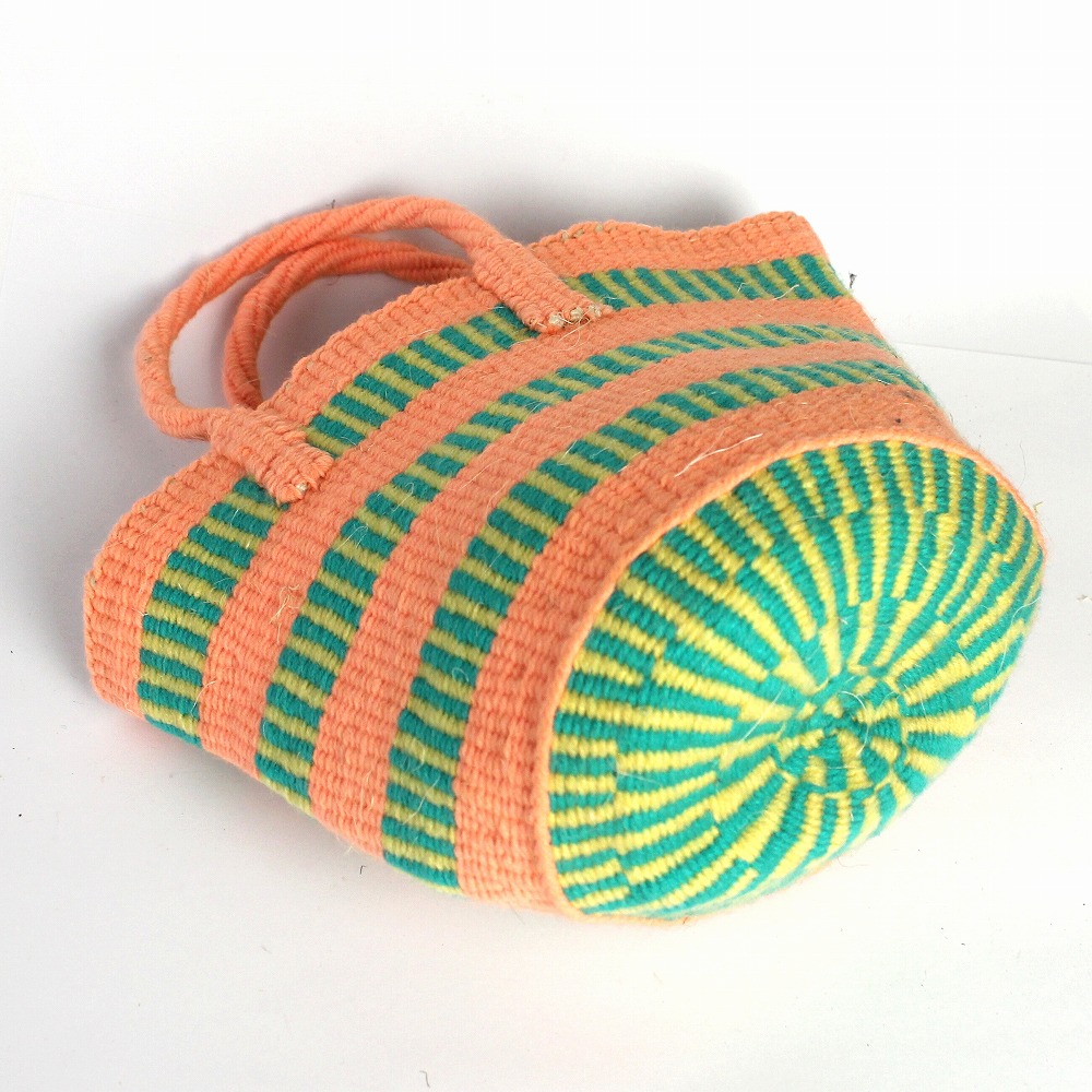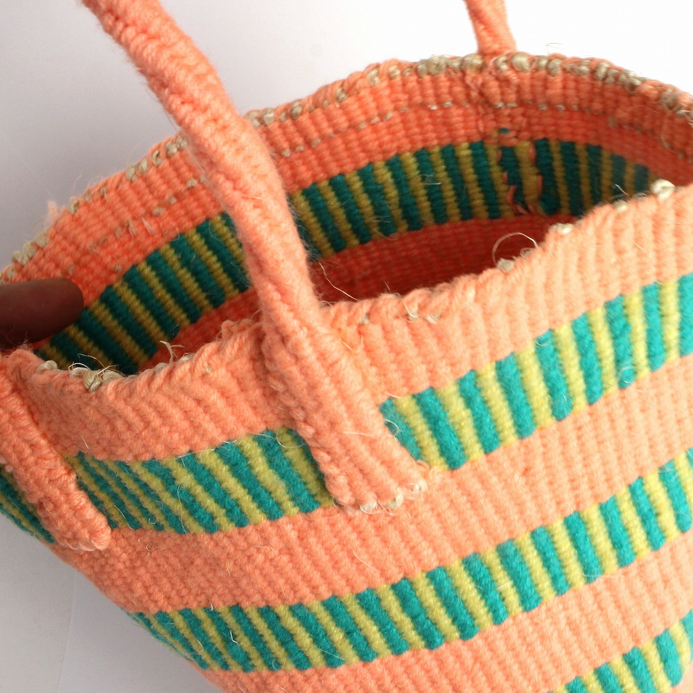 サイザル麻を芯にして、カラフルなスクールセーターのリサイクル毛糸を編んだアップサイクルバッグ。優しい手触りと色合いがとても使いやすいです。スマホや財布など意外と色々入り、少しお出かけするのにちょうどよいサイズ、オールシーズン活躍するカゴバッグです。アイディアを加えることで付加価値の高いモノに生まれ変わらせるサスティナブルな試み。世界に一つしかない価値ある「アップサイクルバッグ」いかがでしょうか?