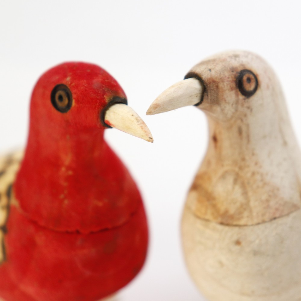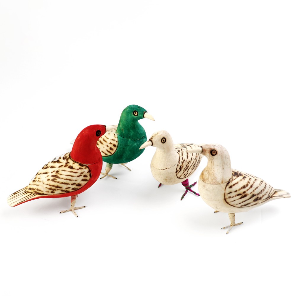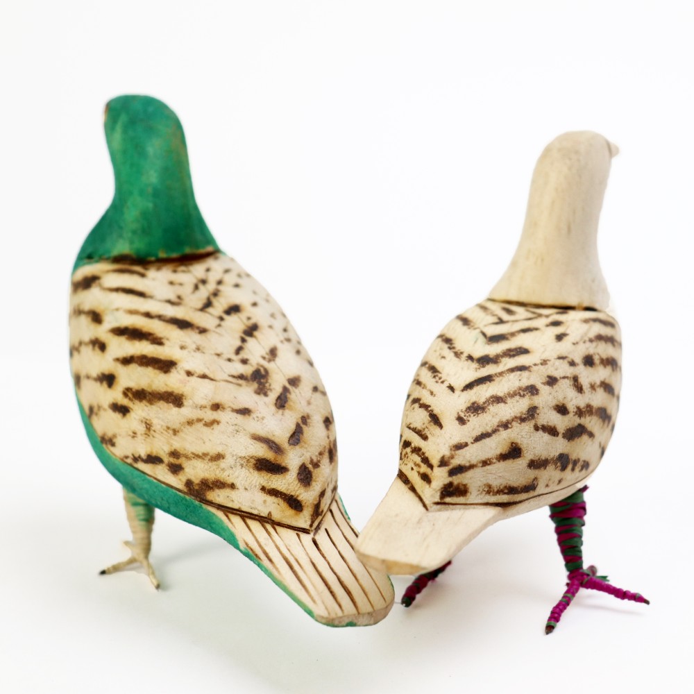 白木に素朴な焼き模様を施した、やさしい表情の木の鳥です。ナチュラルとカラーの2種ご用意いたしました。お部屋のインテリアにどうぞ。