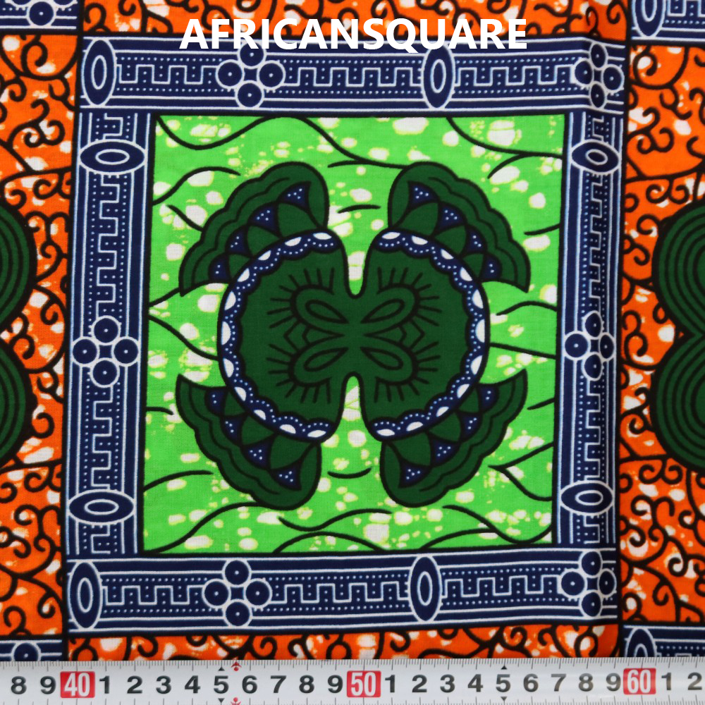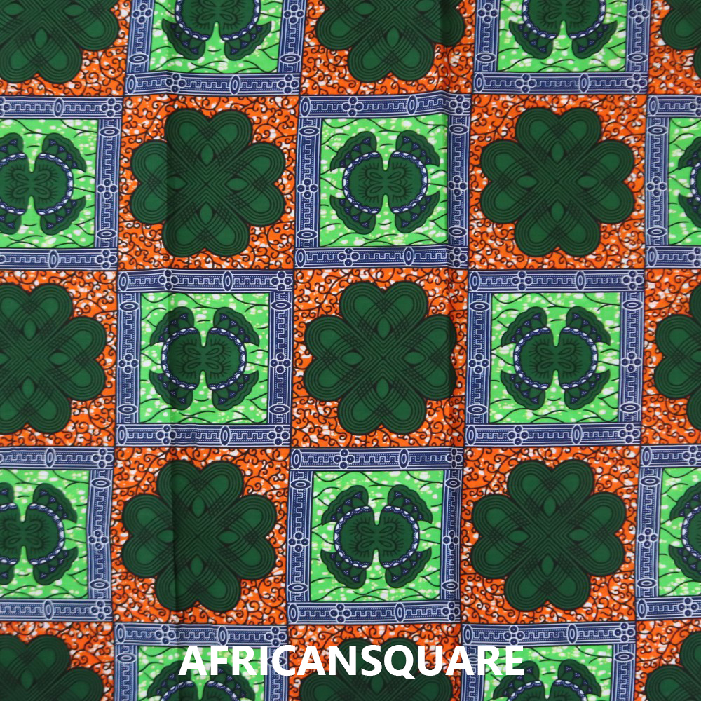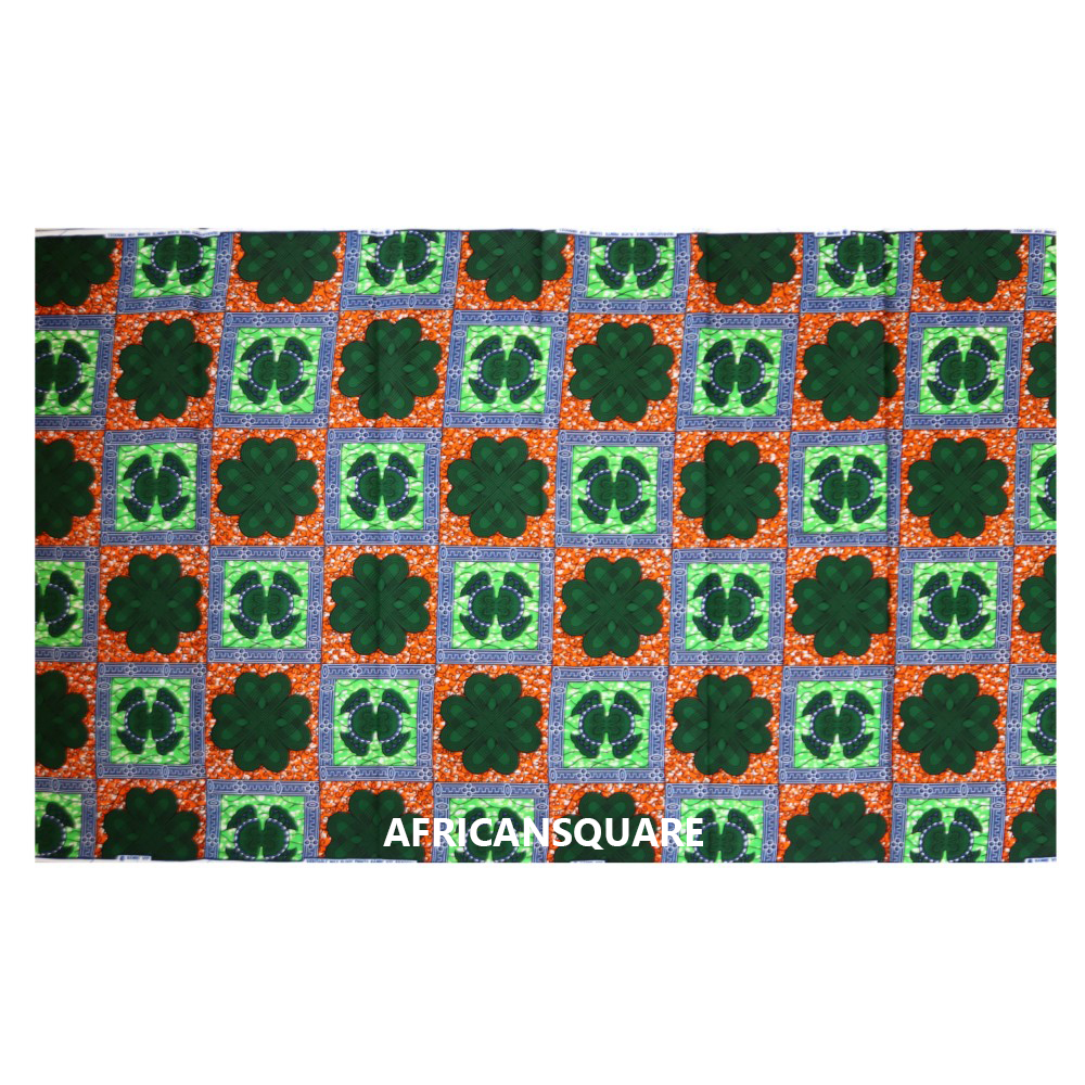 鮮やかな色彩や大胆な柄が魅力の西アフリカのワックスプリントです。西アフリカの女性たちは、色とりどりのパーニュ(腰巻き布)を身にまとい、ファッションを楽しみます。日本でも、カラフルな色合いや大胆なデザインで根強いファンも多く、手作りバッグや衣料、またインテリアクロス等にもお使いいただけます。2ヤード単位で切り売りいたします。(4ヤード以上ご注文の場合は、ご注文の長さでカットします。)