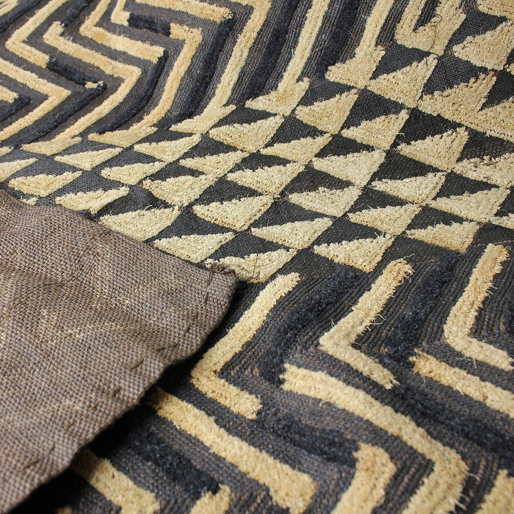 アフリカ中央部に位置するコンゴ民主共和国にかつて栄えたクバ王国に伝わる伝統的な布です。ショワやブショングの人々が作る「クバ布」は、独特で芸術性が高く、額に装丁して格調高い美術品として、また高級感あふれるインテリアクロスやタペストリー、敷物としてたいへん人気の工芸品です。