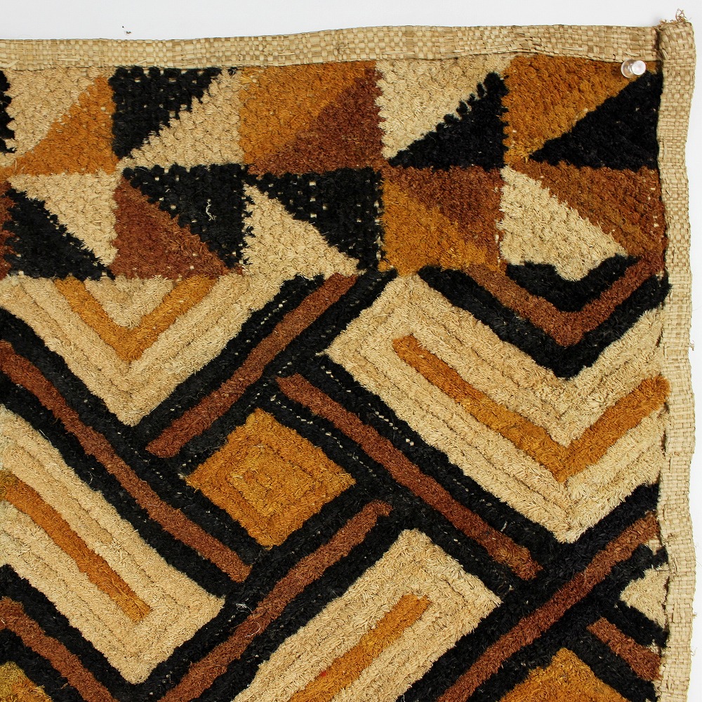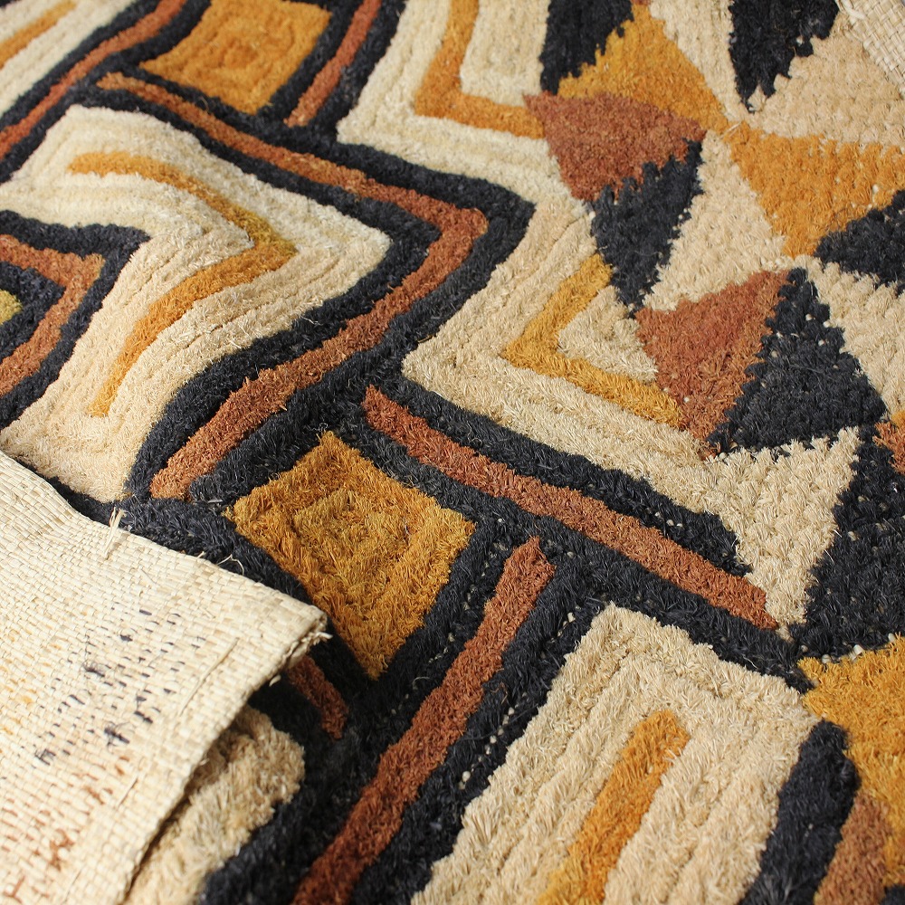 アフリカ中央部に位置するコンゴ民主共和国にかつて栄えたクバ王国に伝わる伝統的な布です。ショワやブショングの人々が作る「クバ布」は、独特で芸術性が高く、額に装丁して格調高い美術品として、また高級感あふれるインテリアクロスやタペストリー、敷物としてたいへん人気の工芸品です。