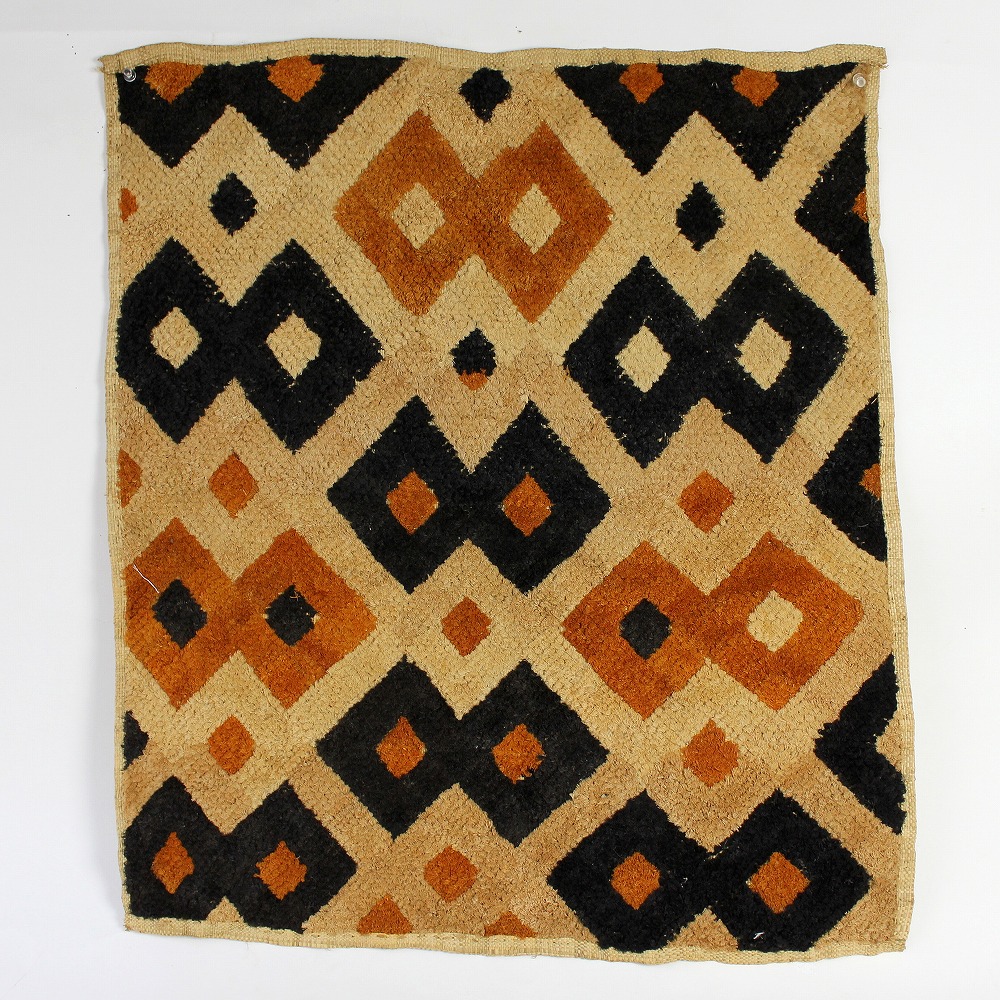 アフリカ中央部に位置するコンゴ民主共和国にかつて栄えたクバ王国に伝わる伝統的な布です。ショワやブショングの人々が作る「クバ布」は、独特で芸術性が高く、額に装丁して格調高い美術品として、また高級感あふれるインテリアクロスやタペストリー、敷物としてたいへん人気の工芸品です。