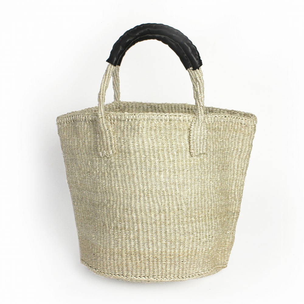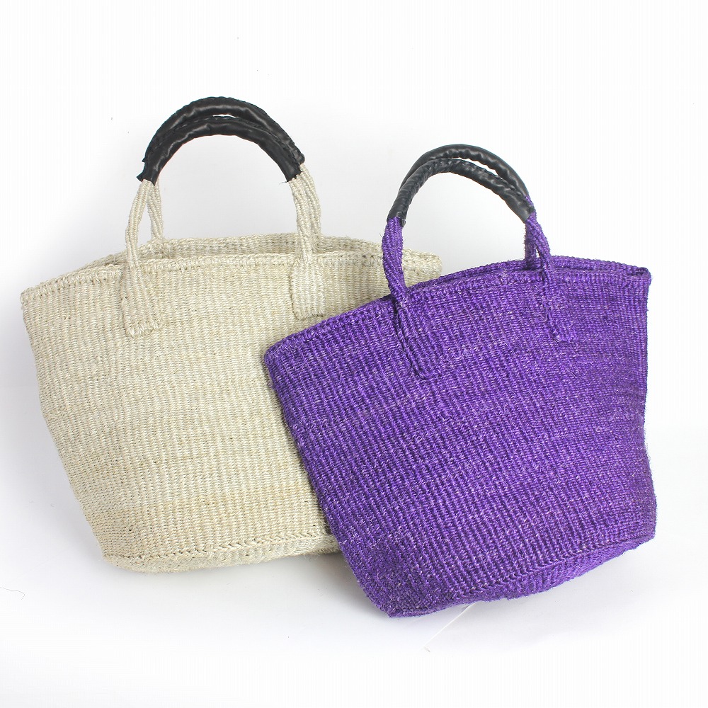 ●色:ケニアの情勢により同じ染料を毎回手に入れる事が難しい為、サイザルバッグは色ぶれのある商品となっています。お手持ちPCによっても色の印象が変わる場合がございますので参考程度にお願いします。●手作り品の為、形サイズにバラ付きがございます。取っ手部分の左右のずれ等も不良品の対象ではございません。●バスケットの毛羽立ち・においが多少ある場合がございます。●色落ち:バスケットや革部分が摩擦、汗や雨などによる水濡れによって色落ち、色移りの恐れがあります。白色や淡色のものと組み合わせる際は、製品のお取り扱いに十分にご注意ください。以上の点を予めご了承いただいてからお買い上げいただきますよう宜しくお願い致します。