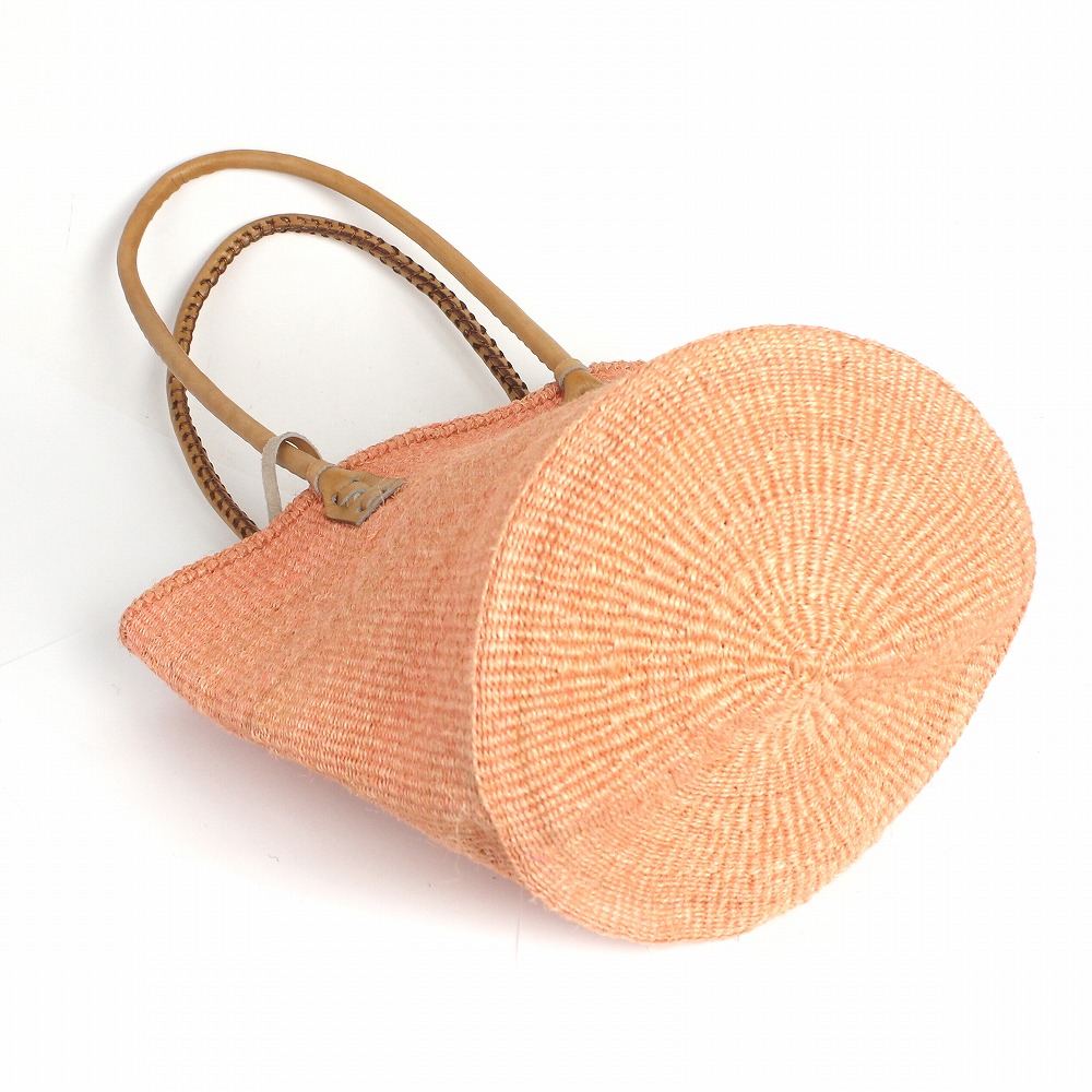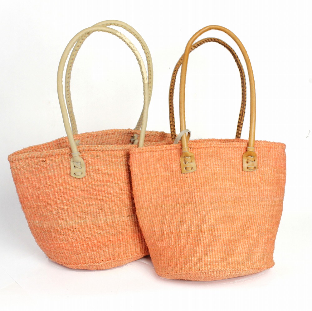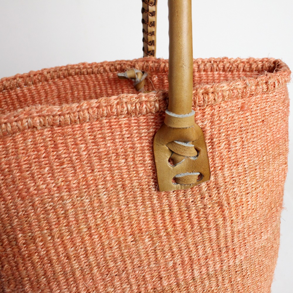 ●色:ケニアの情勢により同じ染料を毎回手に入れる事が難しい為、サイザルバッグは色ぶれのある商品となっています。お手持ちPCによっても色の印象が変わる場合がございますので参考程度にお願いします。●手作り品の為、形サイズにバラ付きがございます。取っ手部分の左右のずれ等も不良品の対象ではございません。●バスケットの毛羽立ち・においが多少ある場合がございます。●色落ち:バスケットや革部分が摩擦、汗や雨などによる水濡れによって色落ち、色移りの恐れがあります。白色や淡色のものと組み合わせる際は、製品のお取り扱いに十分にご注意ください。以上の点を予めご了承いただいてからお買い上げいただきますよう宜しくお願い致します。