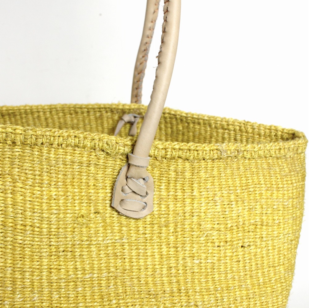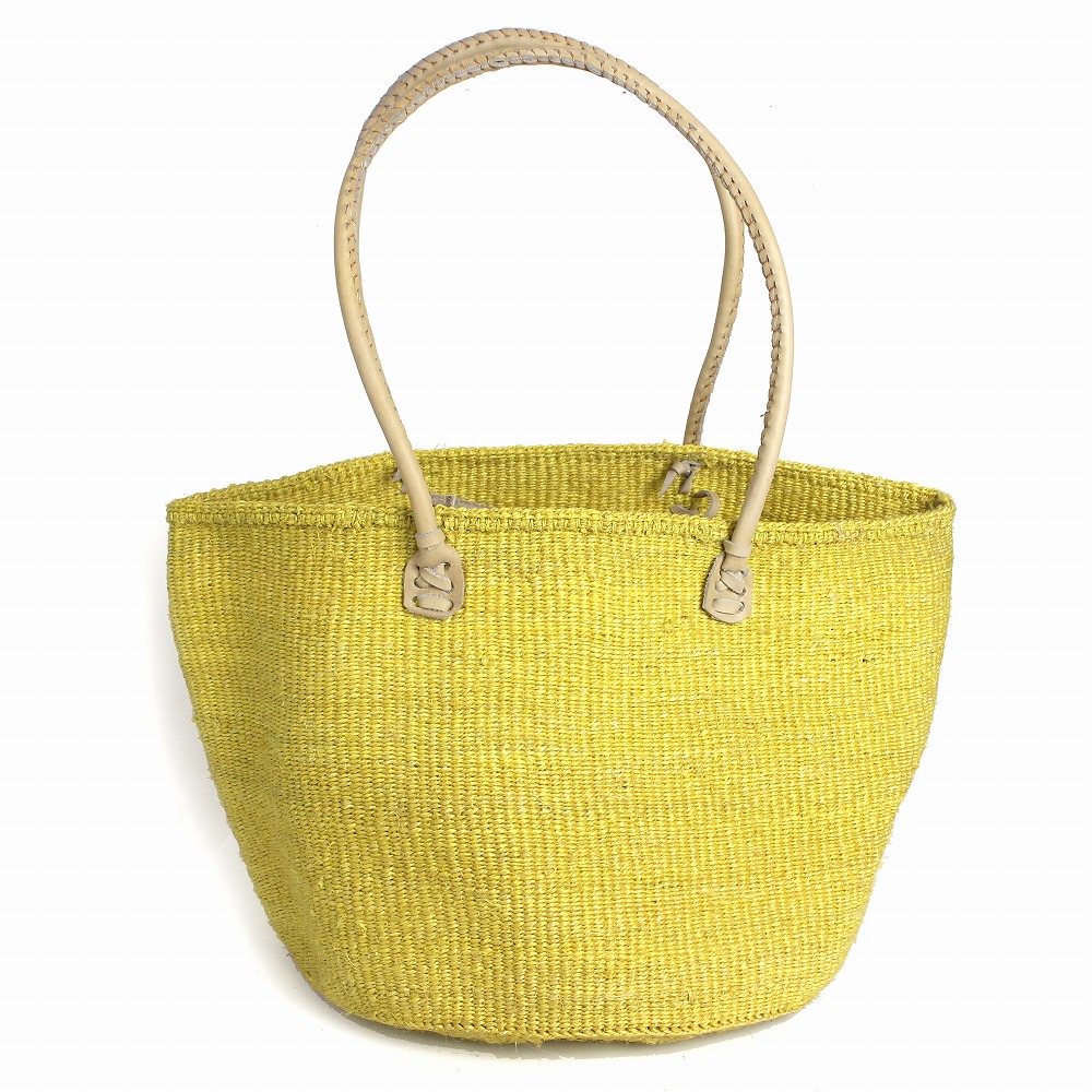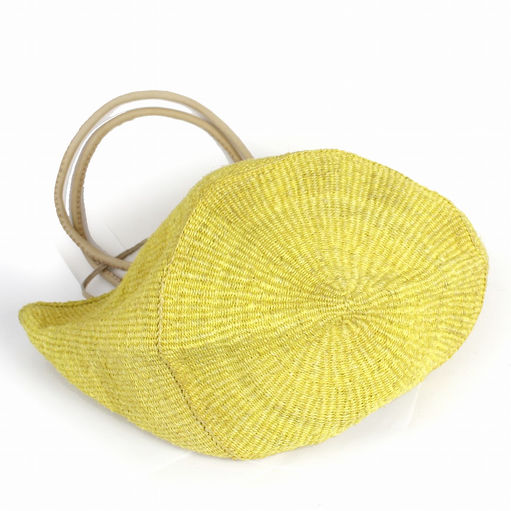 サイザルバッグ12インチ 丸革ハンドル ハンドル長 黄x生成革