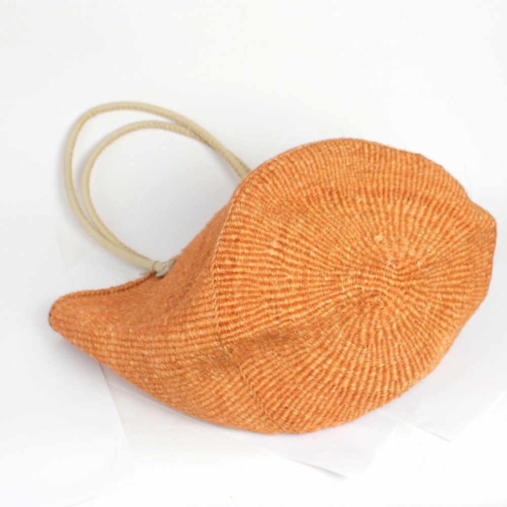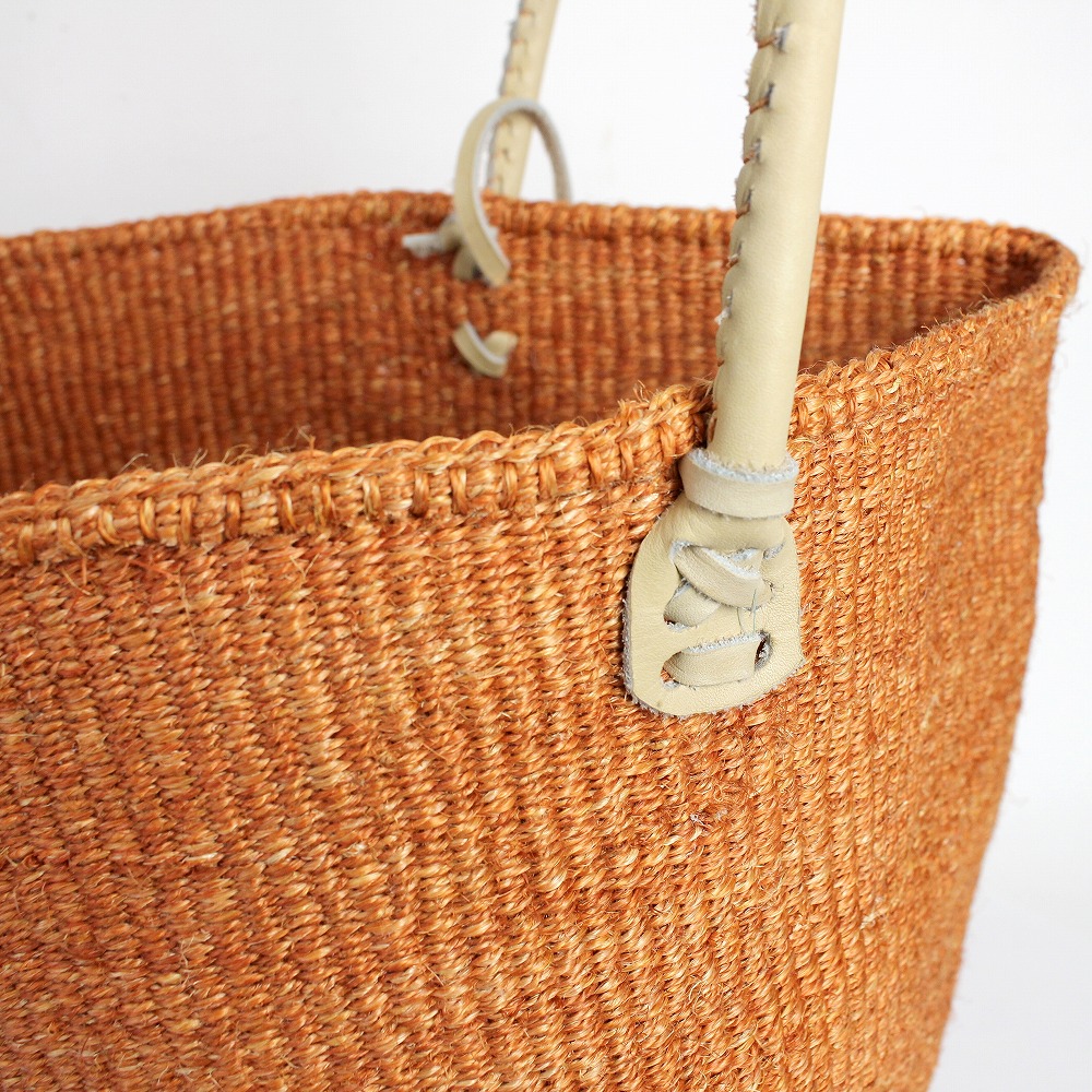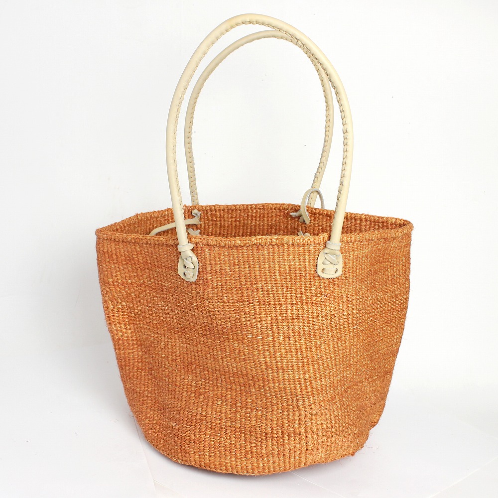 サイザルバッグ12インチ 丸革ハンドル ハンドル長 オレンジx生成革