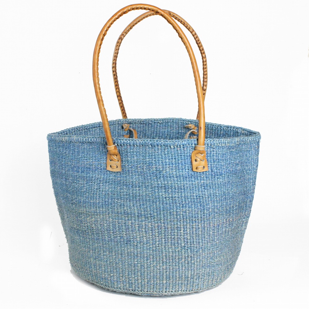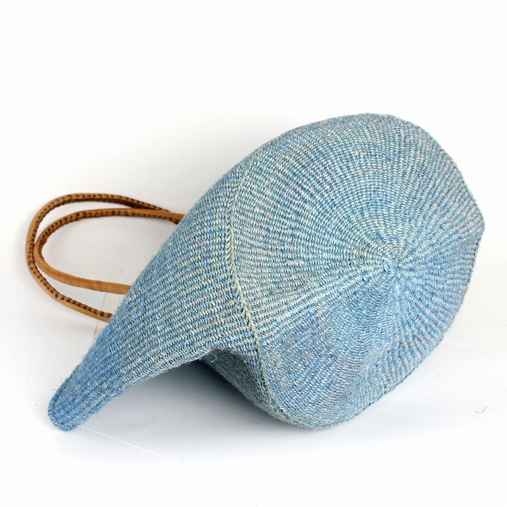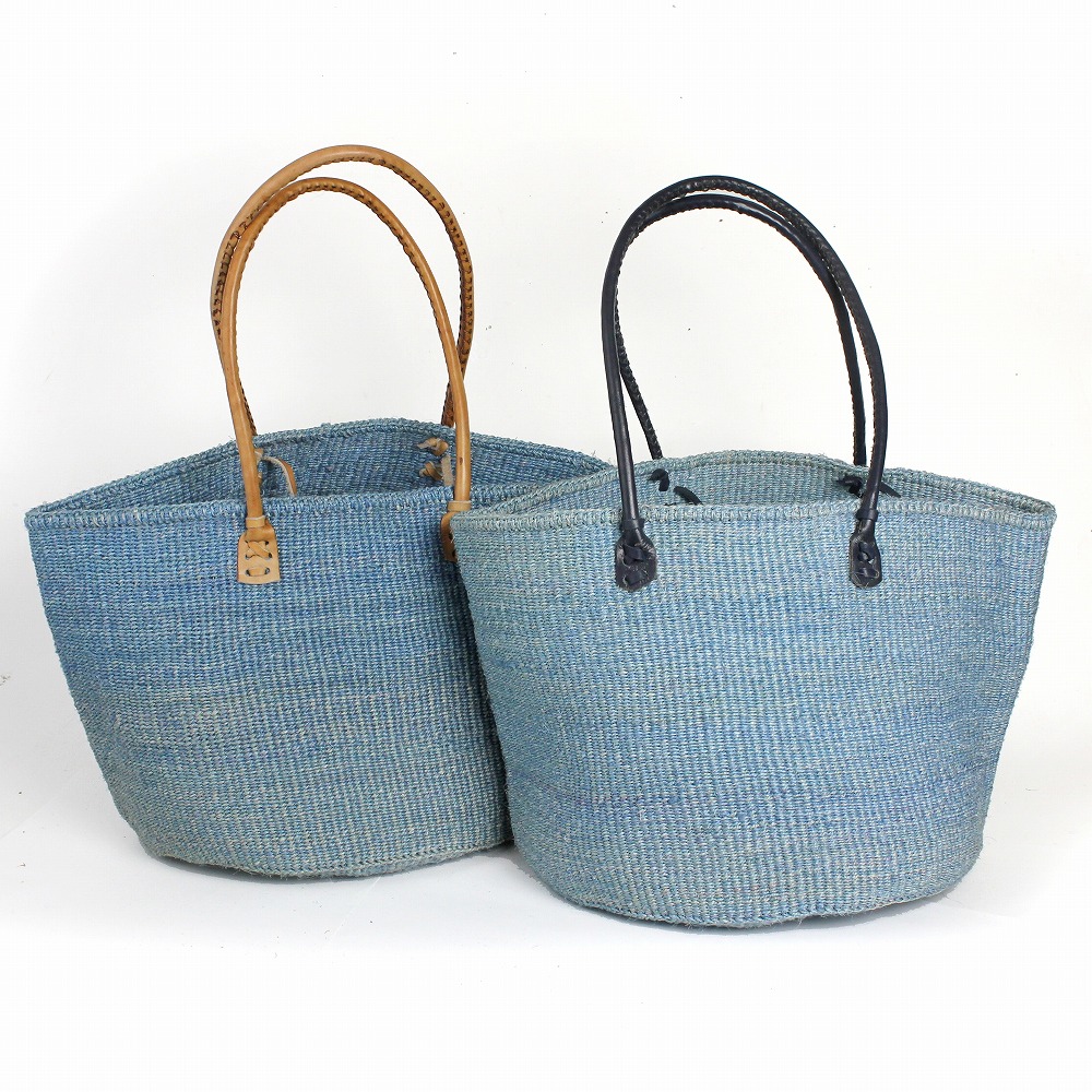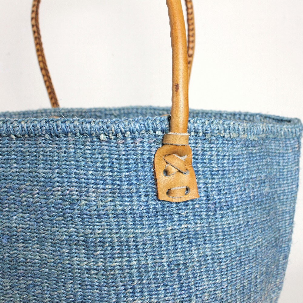 サイザルバッグ12インチ 丸革ハンドル ハンドル長 サックスx茶革