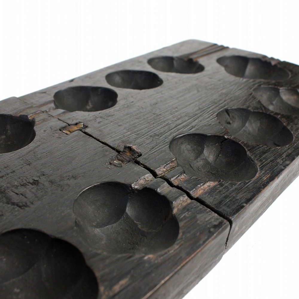 エチオピアから届いたアンティークのマンカラゲームボードです。深い色合い、使い込み感、すべてに味わいがあります。ボードは折り畳み式。マンカラ(mancala)は、アフリカを起源として、豆まきボードゲームです。歴史はかなり古く、紀元前4000年に遡るともいわれています。バックギャモンと並んで世界最古のゲームの一つといわれています。交易や奴隷貿易で世界中に拡がり、今なお世界中で遊ばれるシンプルで奥の深いゲームです。
