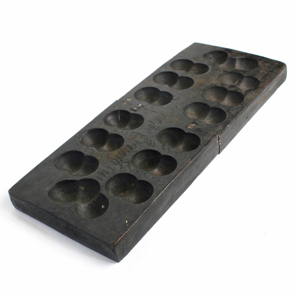エチオピアから届いたアンティークのマンカラゲームボードです。深い色合い、使い込み感、すべてに味わいがあります。ボードは折り畳み式。マンカラ(mancala)は、アフリカを起源として、豆まきボードゲームです。歴史はかなり古く、紀元前4000年に遡るともいわれています。バックギャモンと並んで世界最古のゲームの一つといわれています。交易や奴隷貿易で世界中に拡がり、今なお世界中で遊ばれるシンプルで奥の深いゲームです。