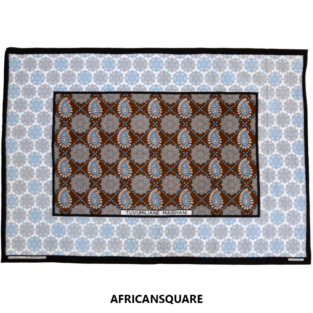 カンガ ケニア フチ縫い TUVUMILIANE MAISHANI 焦げ茶