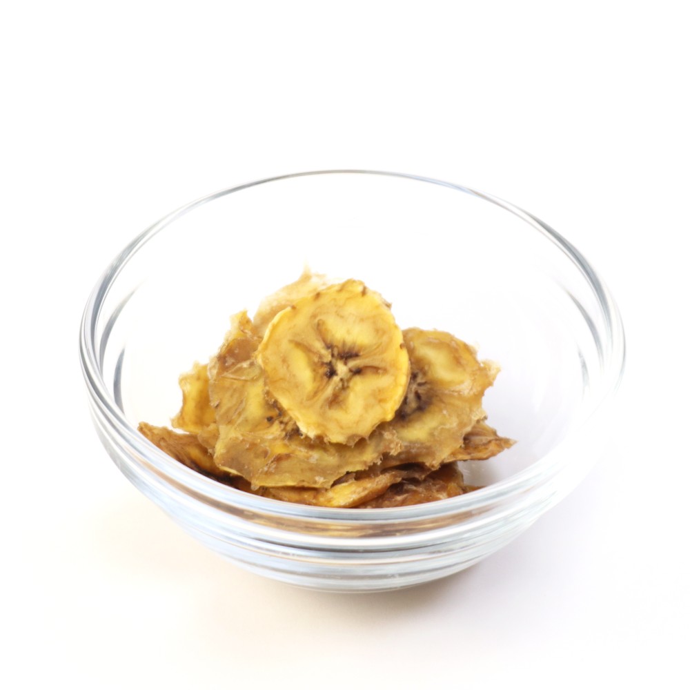 水分をほどよく残し、バナナのねっとりとした食感はそのままに、あえて薄くスライスしています。厚みを抑えることで口当たりが軽くなり、バナナ本来の強い甘みと豊潤な香りがすっと広がります。そのままでも、刻んでヨーグルトやグラノーラにも使いやすい仕上がりです。