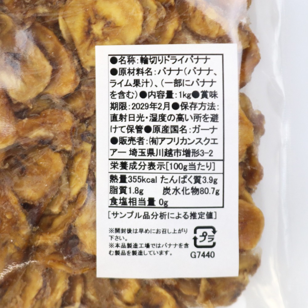 ガーナのドライバナナ 輪切り 原料1KG