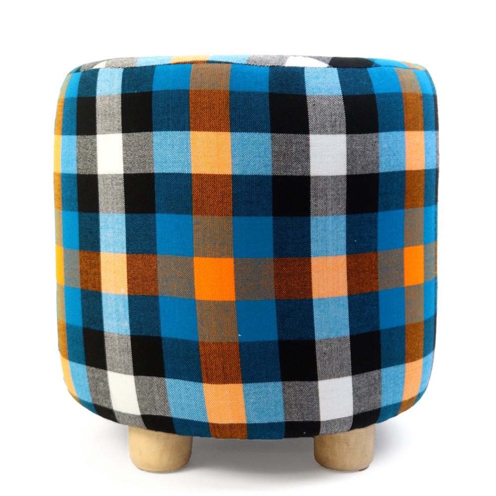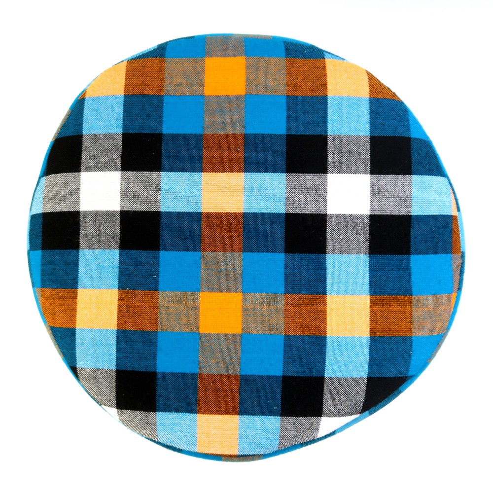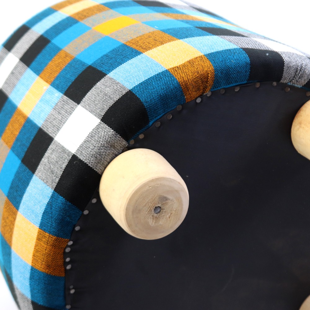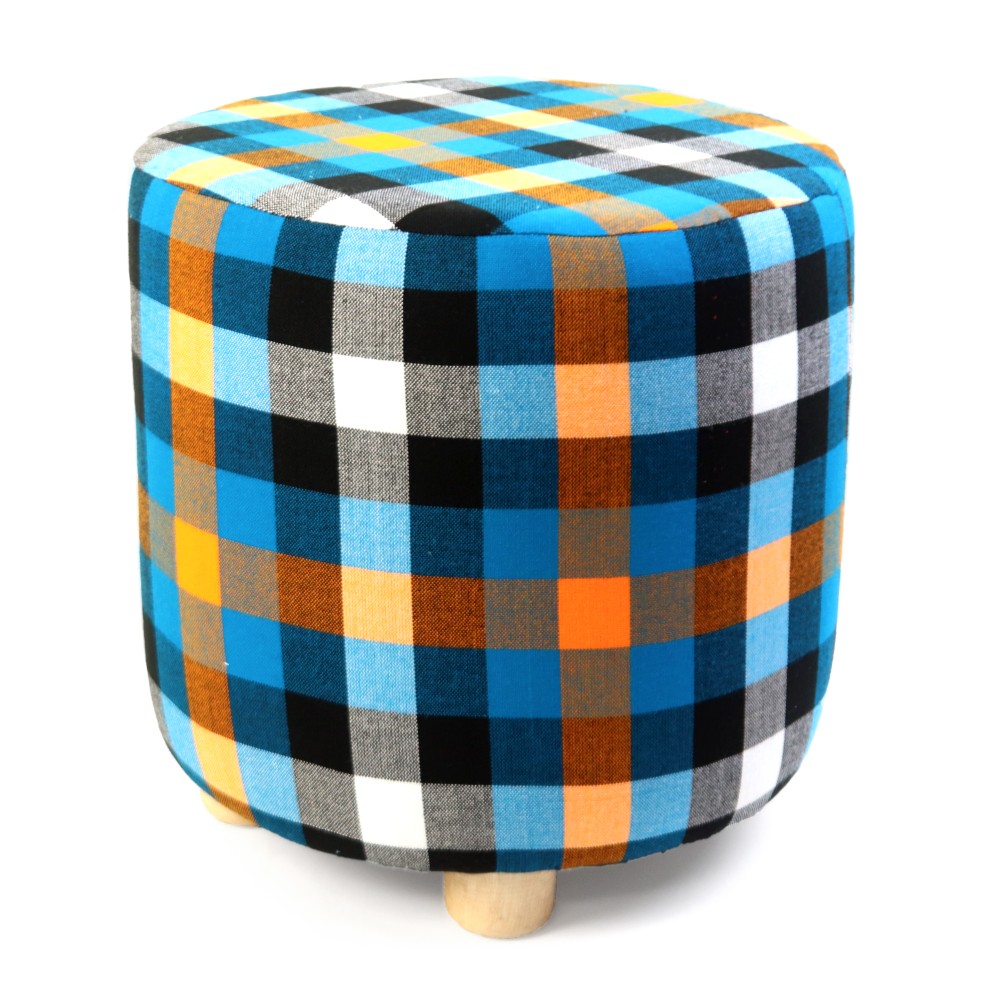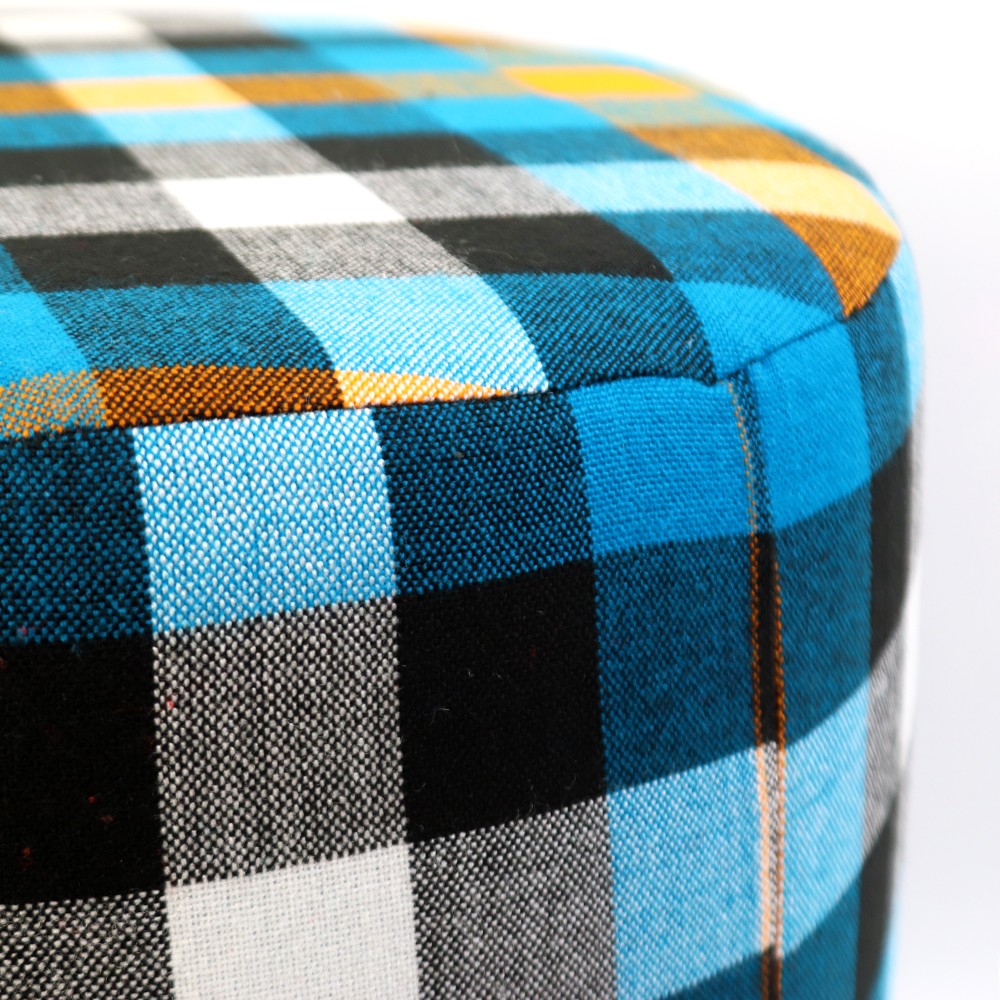 マサイブランケットを使った円柱スツールです。レトロな雰囲気のチェック柄はインテリアのアクセントにおすすめです。