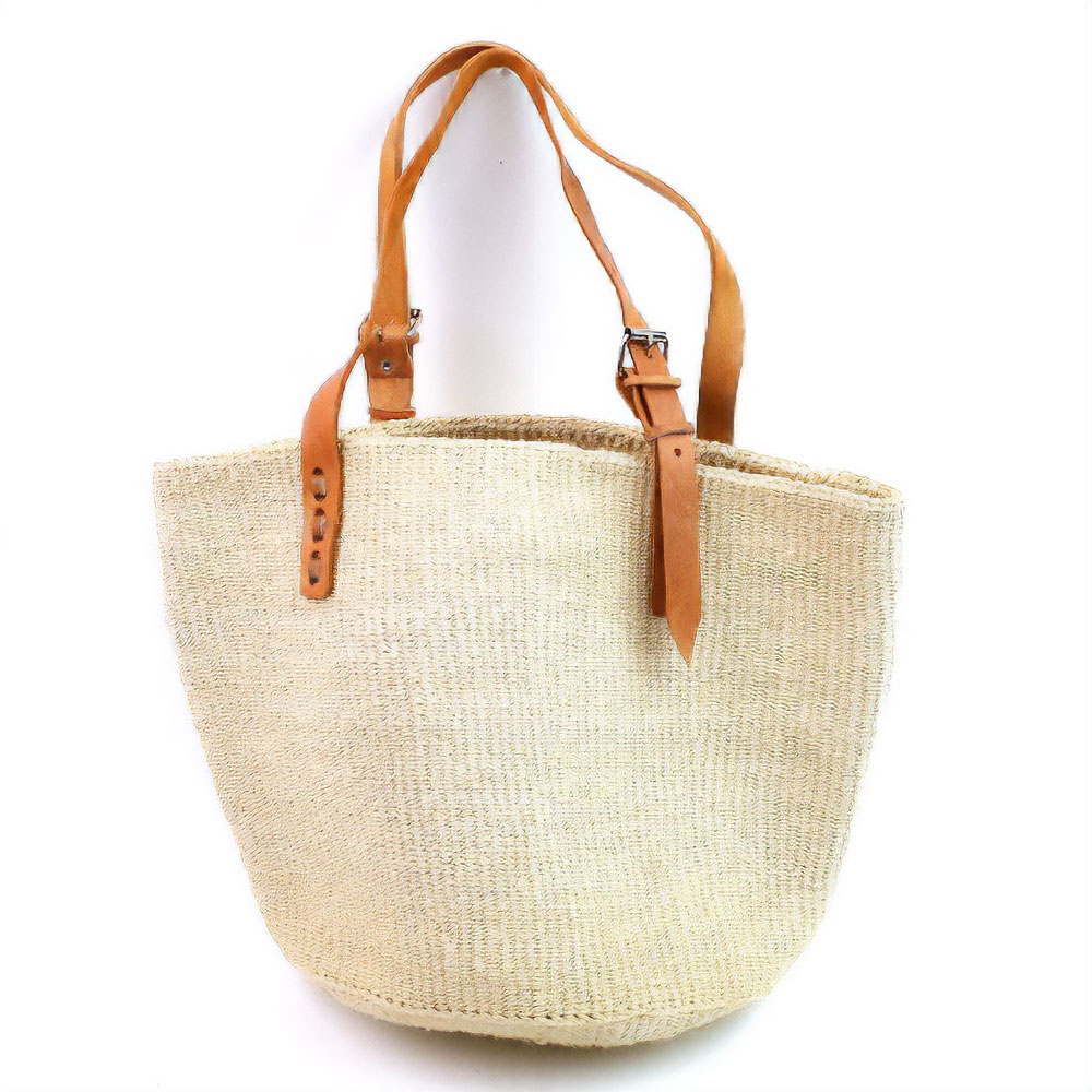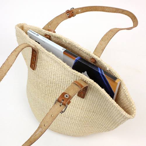 サイザルバッグ平革ベルトハンドル(調節可能) 白