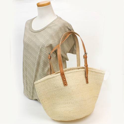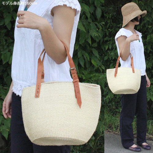●色:ケニアの情勢により同じ染料を毎回手に入れる事が難しい為、サイザルバッグは色ぶれのある商品となっています。お手持ちPCによっても色の印象が変わる場合がございますので参考程度にお願いします。●手作り品の為、形サイズにバラ付きがございます。取っ手部分の左右のずれ等も不良品の対象ではございません。●バスケットの毛羽立ち・においが多少ある場合がございます。●色落ち:バスケットや革部分が摩擦、汗や雨などによる水濡れによって色落ち、色移りの恐れがあります。白色や淡色のものと組み合わせる際は、製品のお取り扱いに十分にご注意ください。以上の点を予めご了承いただいてからお買い上げいただきますよう宜しくお願い致します。