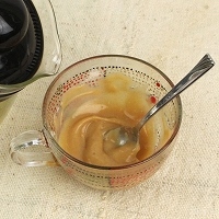 ②バオバブパウダー大さじ2をカップに入れ、少量のお湯でよく混ぜ溶かし、さらにしょうが湯を注ぎ出来上がり。