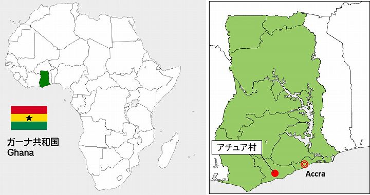 主にガーナの首都アクラから西に約120kmに位置するアチュア村という場所で作られています。
