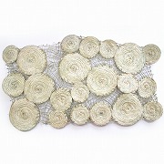 2トーンのラフィアを、ネット上に編み上げた
