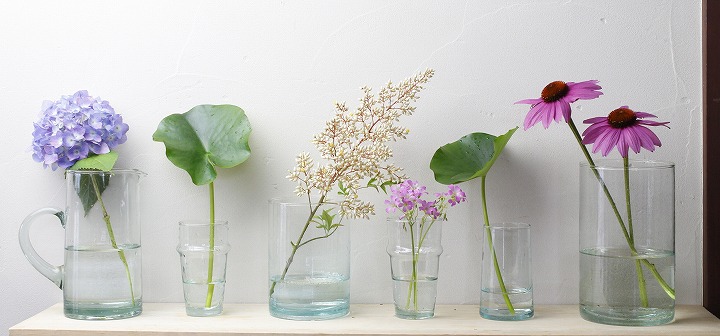 ■モロッコ:ベルベルラグ,ストローかご,リサイクル無地グラス,