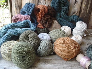| 染料は花や樹皮など、ケニアの身近な自然から。 その毛糸で編まれた小さな動物たちは