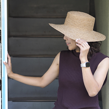 やさしいベージュのハット。